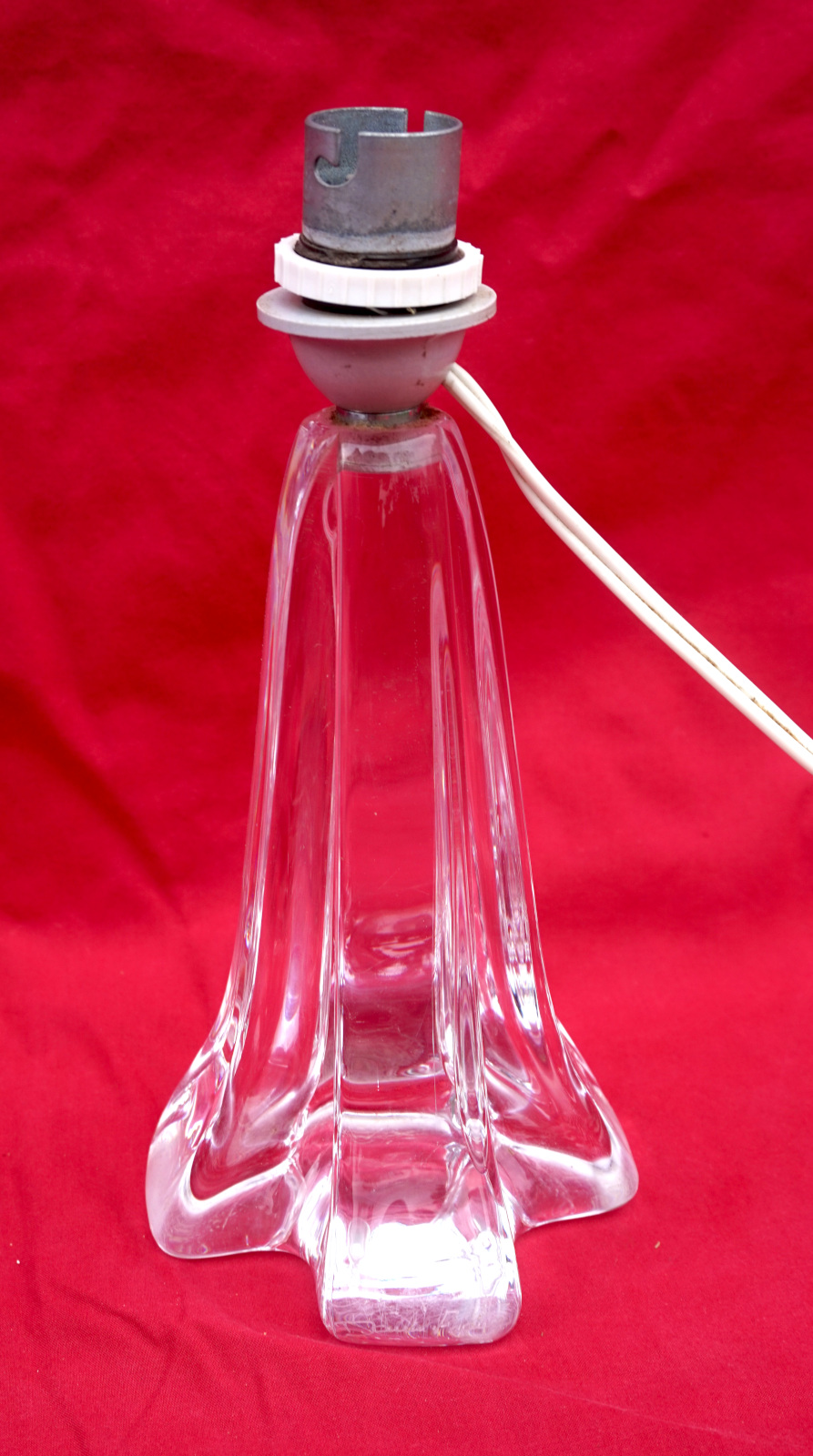 DAUM FRANCE Vintage Lamp Base Clear Crystal Signed 1970's 8" Height