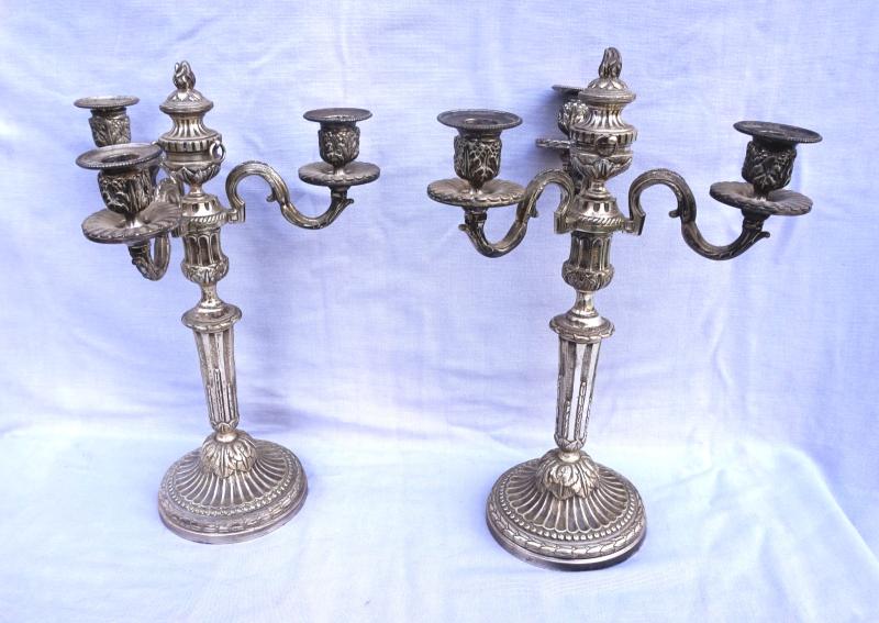 Silver Plated Brass Candelabra 3 Lights Pair Louis XVI 19th C 15"