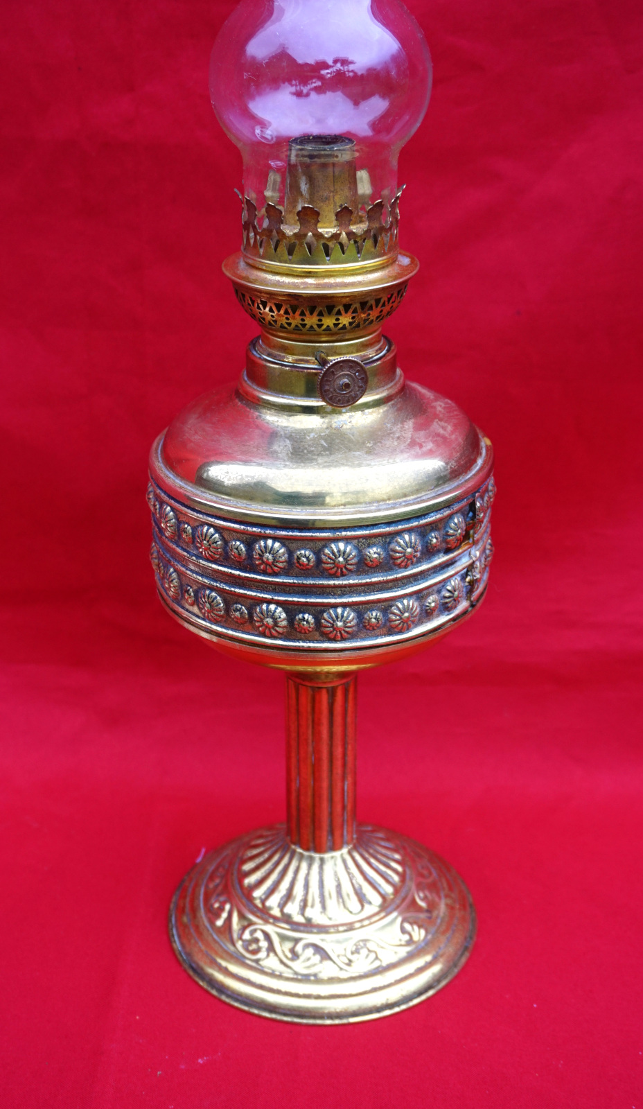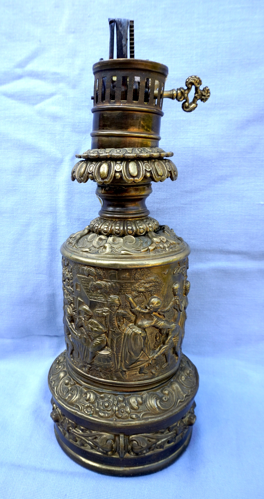 Embossed Brass Oil Lamp Kosmos Burner 1920's