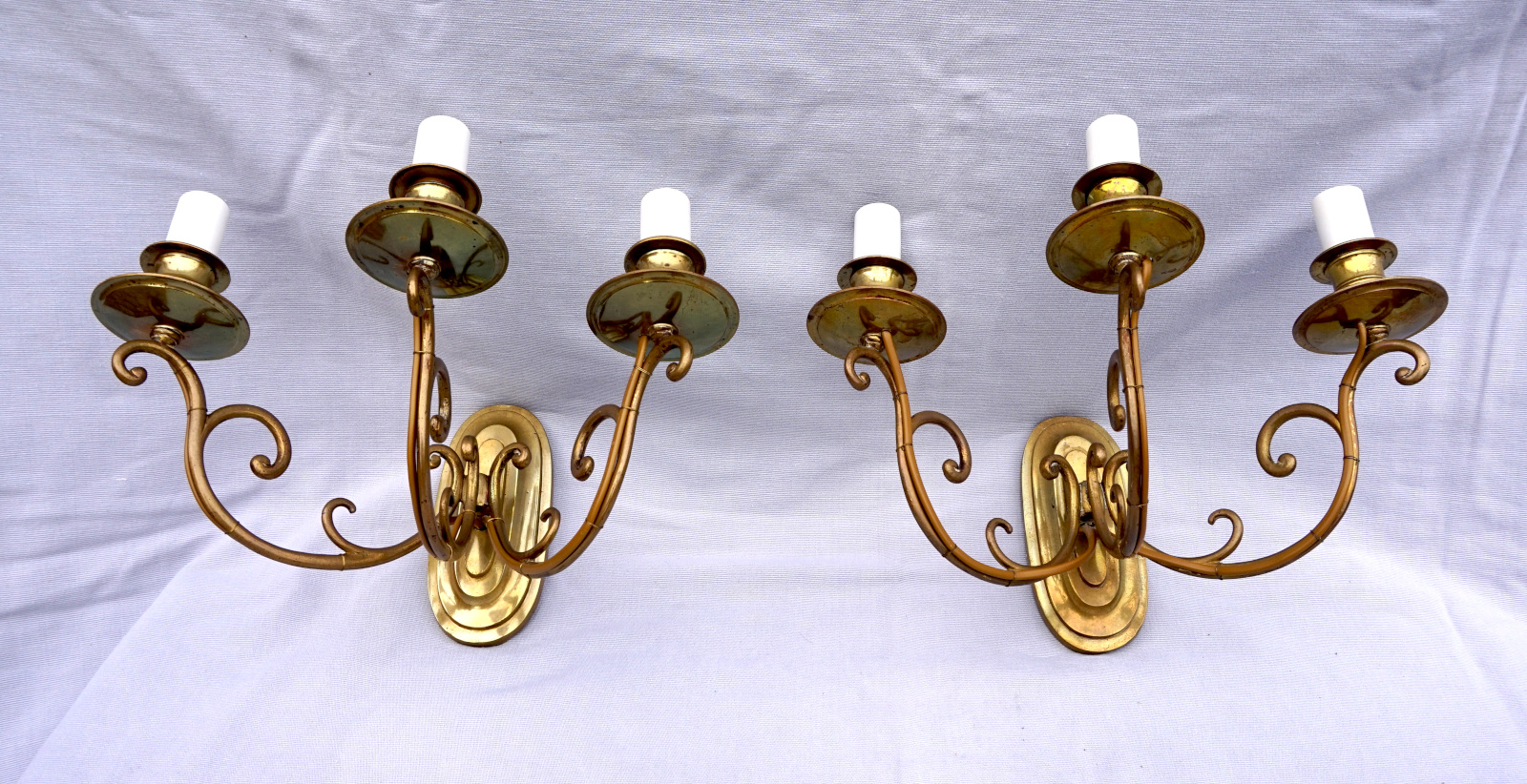 Louis XVI Style Pair Wall Sconce 3 Lights Gilt Brass