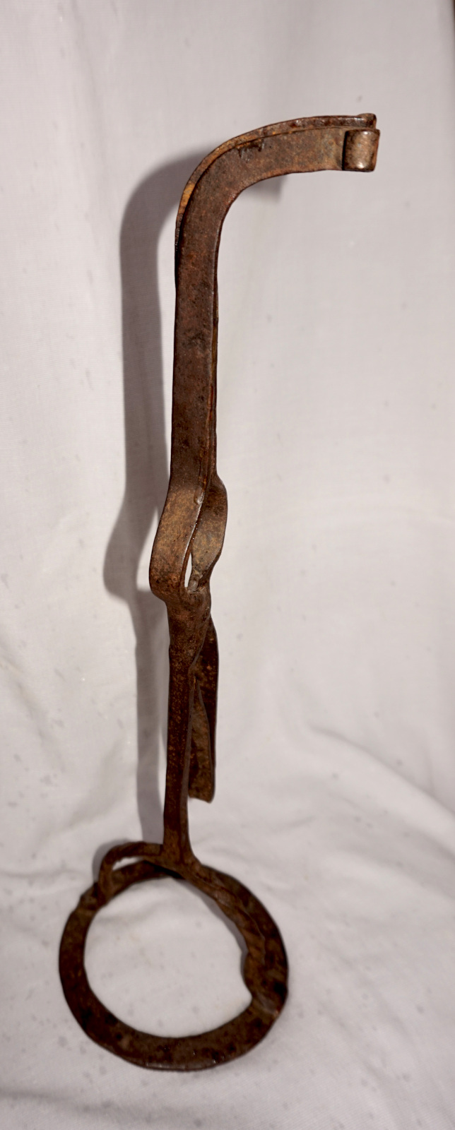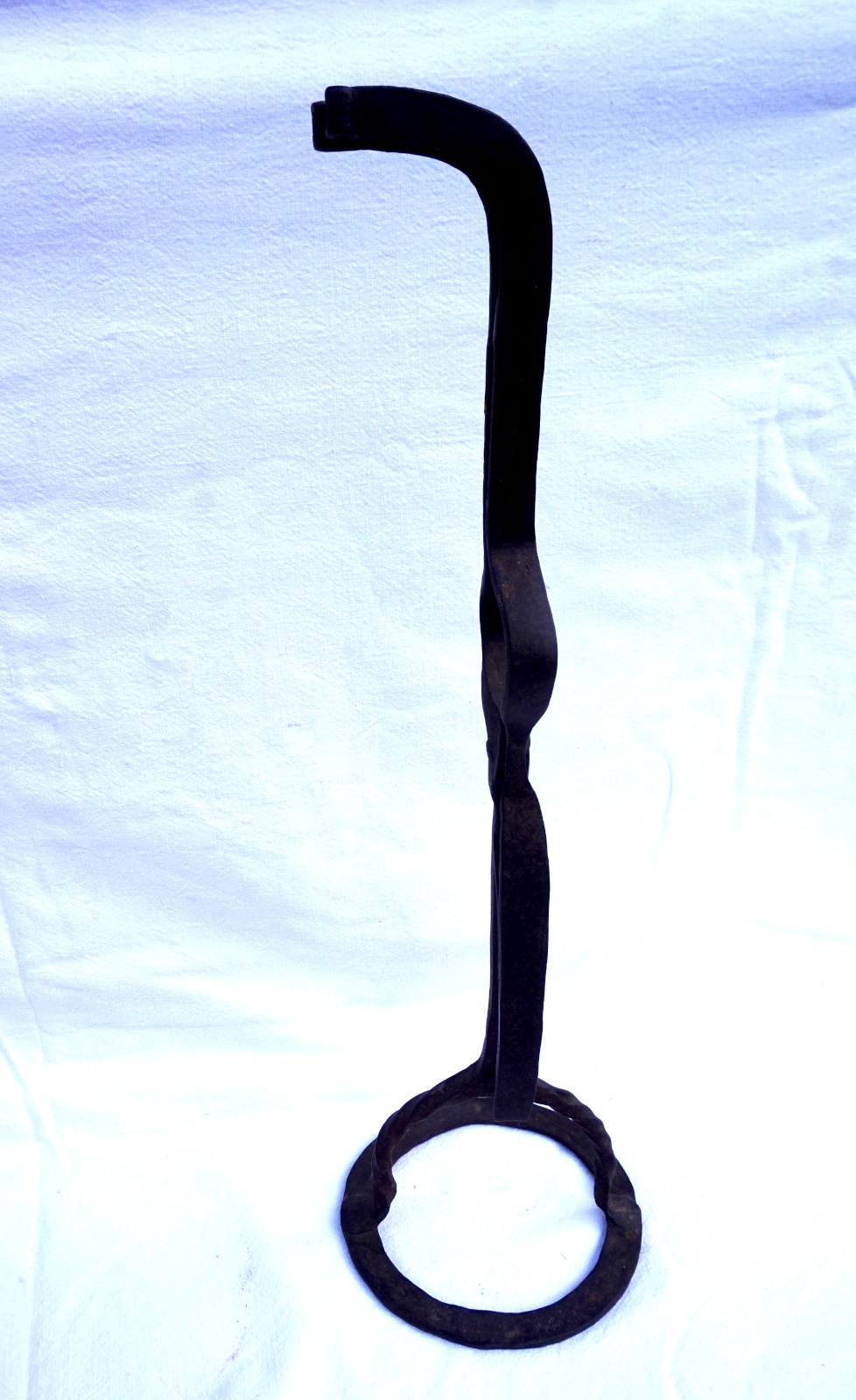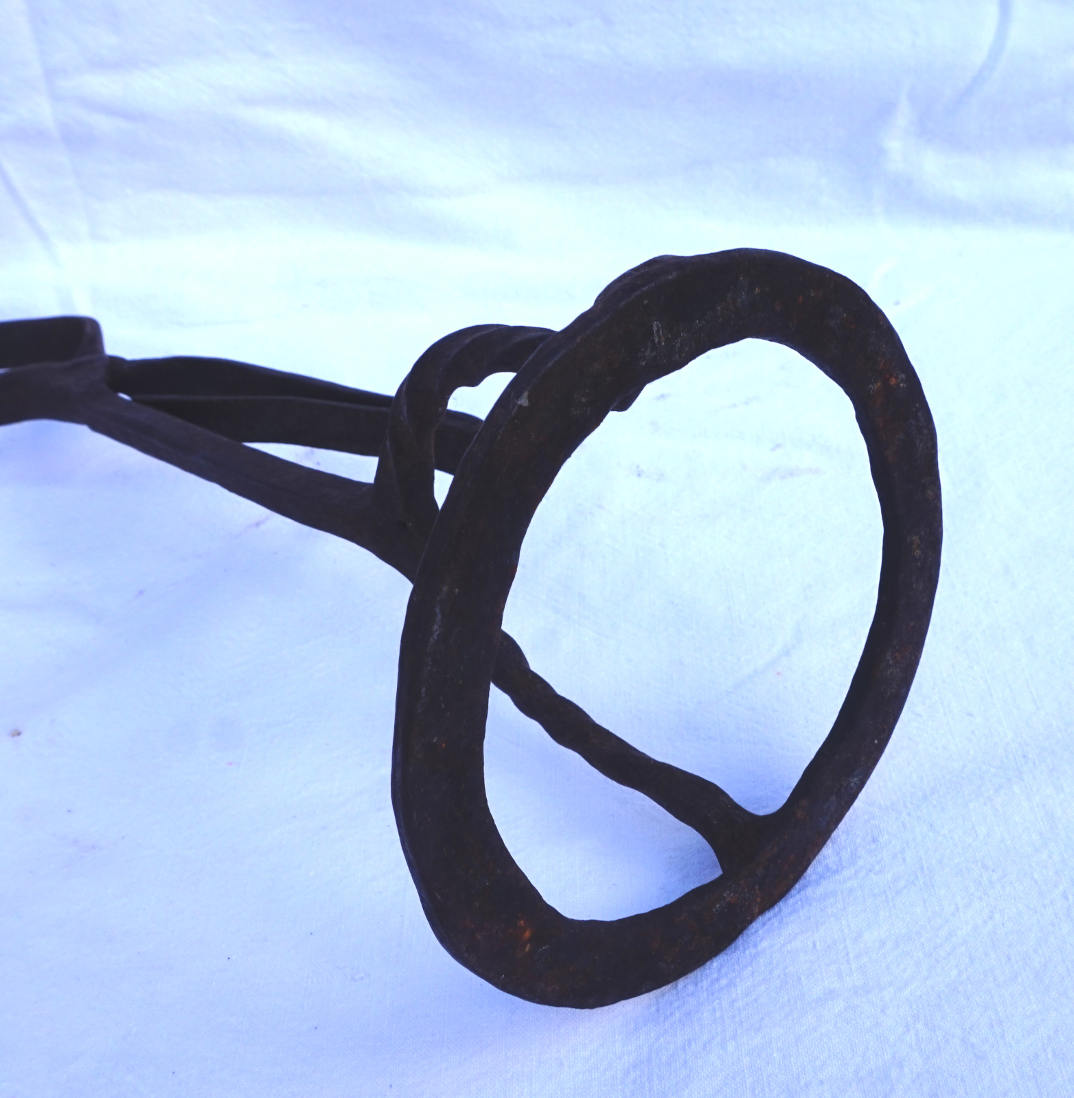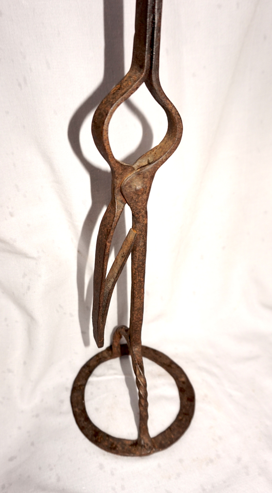 Résinier porte éclats, porte chandelle en fer forgé, début XIX° siècle. Hauteur 46 cm, diamètre à la base 13.5 cm, poids 787 gr. Très bel état.