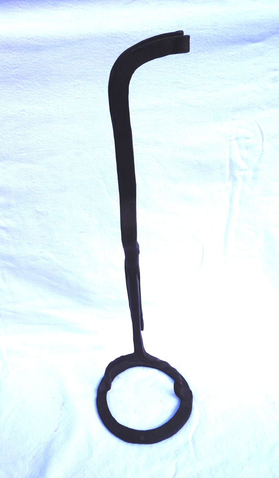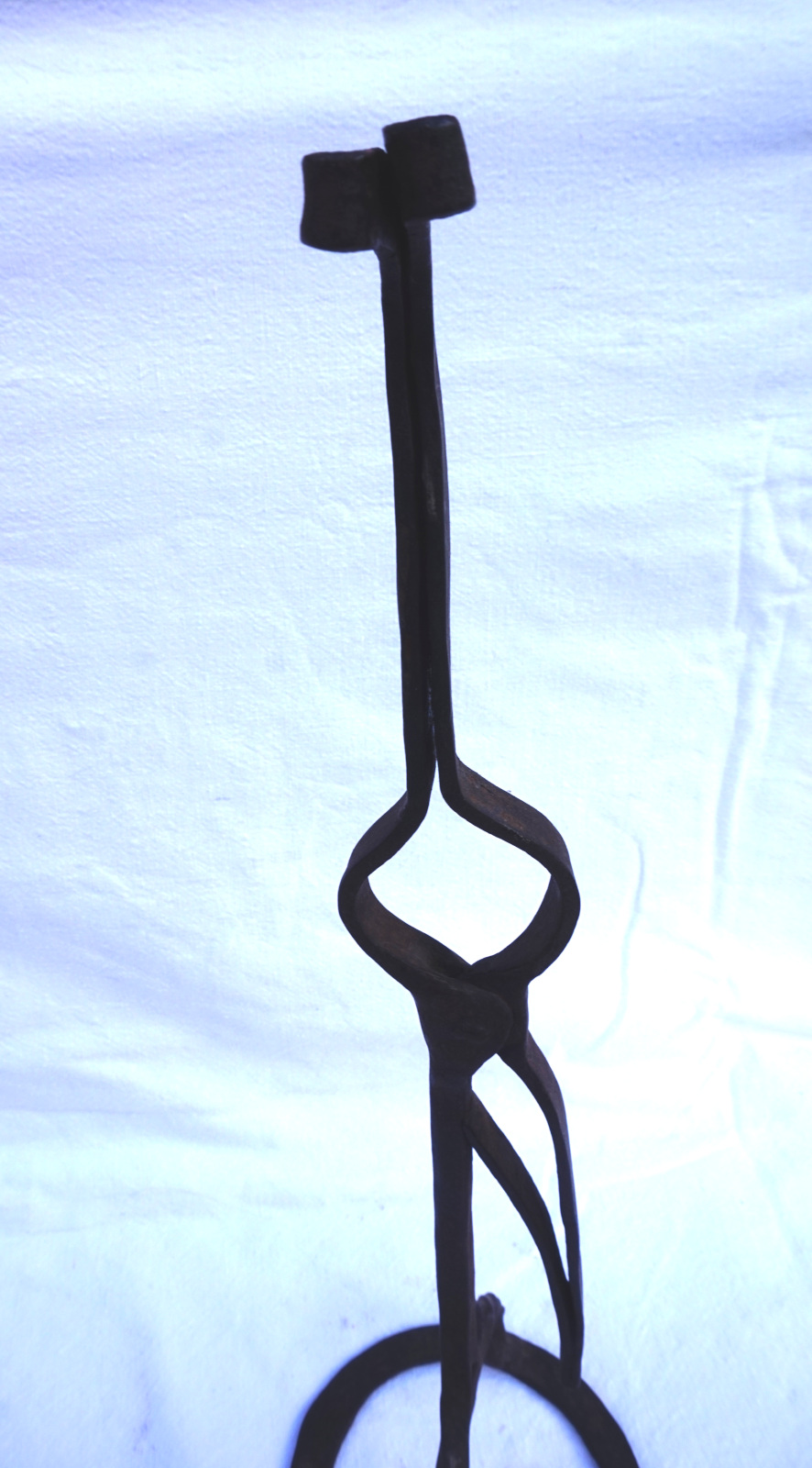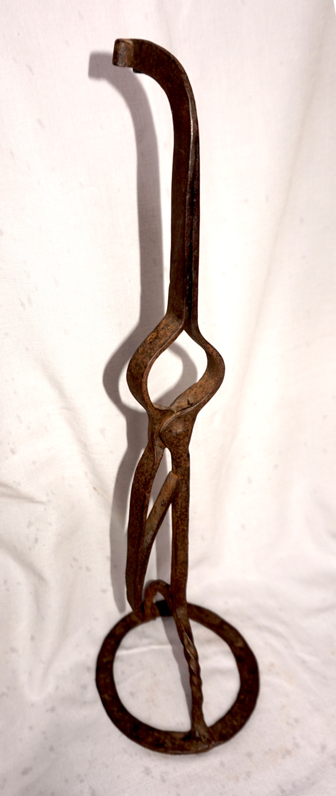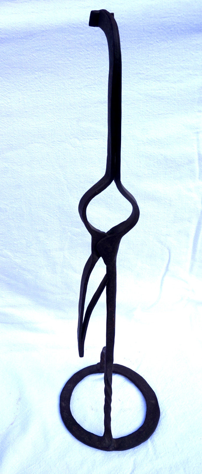 Résinier porte éclats, porte chandelle en fer forgé, début XIX° siècle. Hauteur 46 cm, diamètre à la base 13.5 cm, poids 787 gr. Très bel état.