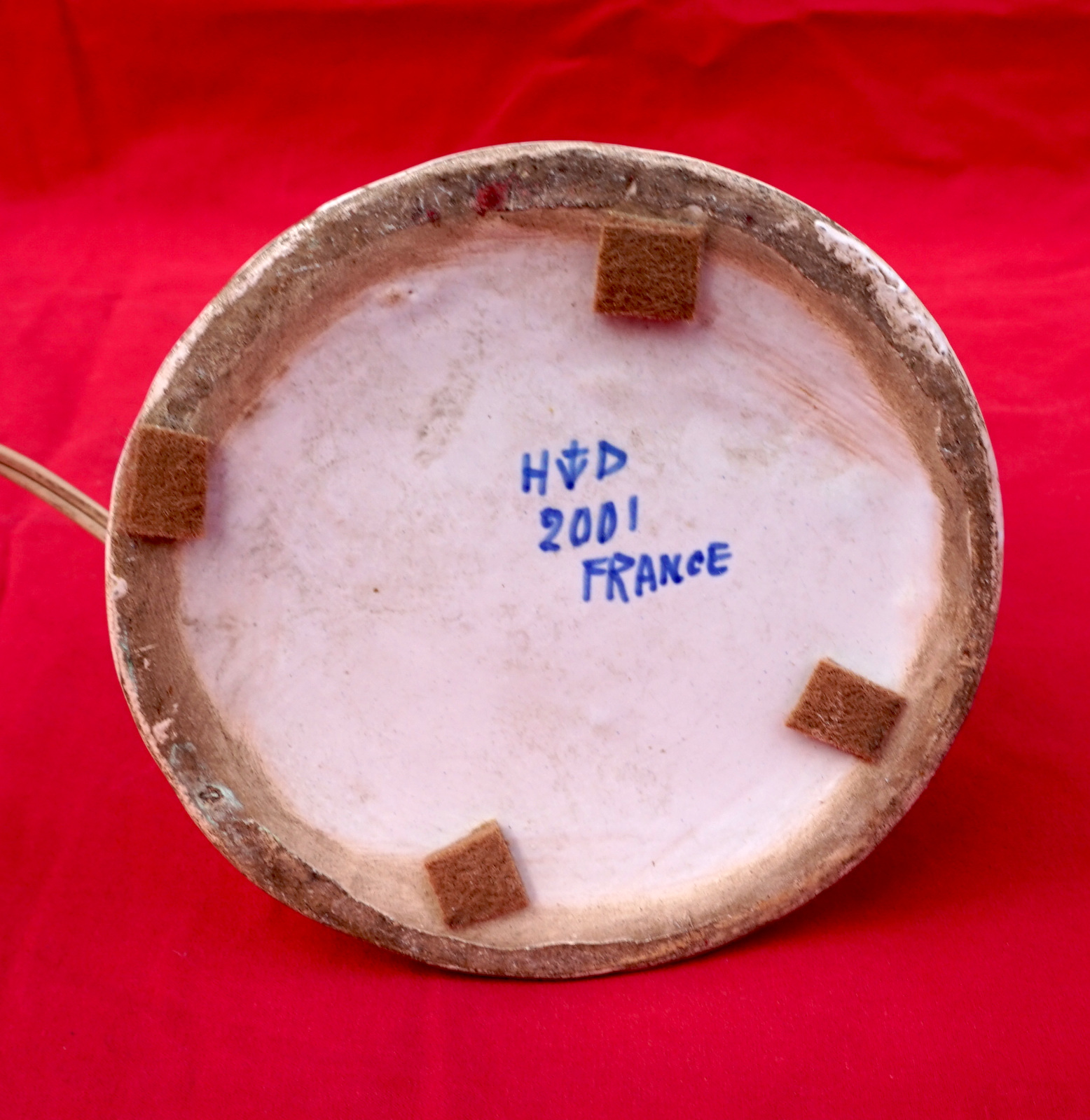Pied de lampe en faïence par Henri Delcourt à Desvres vers 1930. Hauteur 21 cm, diametre 9 cm. Très bel état.