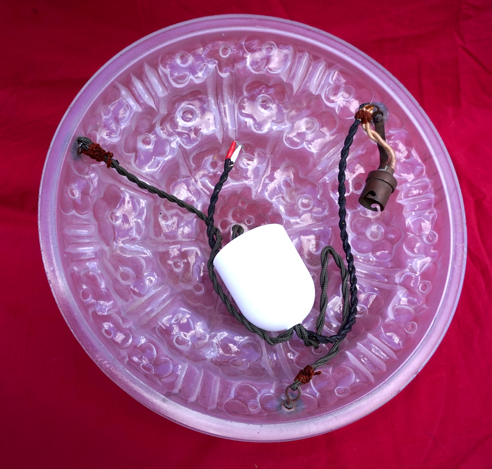 Art Deco DEGUE Pressed Glass Dome Chandelier Ceiling Light Flowers