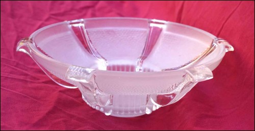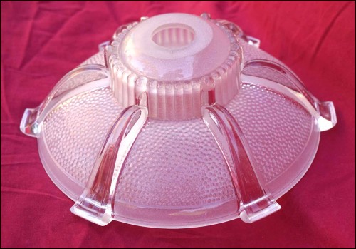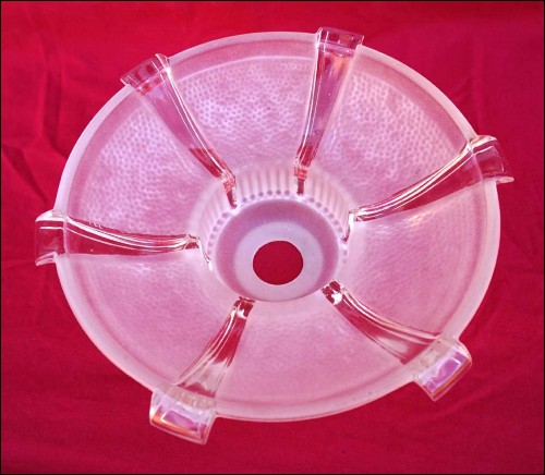 Verrerie Art Deco de lustres ou appliques en verre pressé et dépoli, fabrication Ezan ? 22.5 cm diamètre, hauteur 7.7 cm. Parfait état.