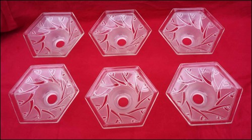 Art Deco Frosted Clear Glass Set of 6 Shades Bobeches Bowl 1940