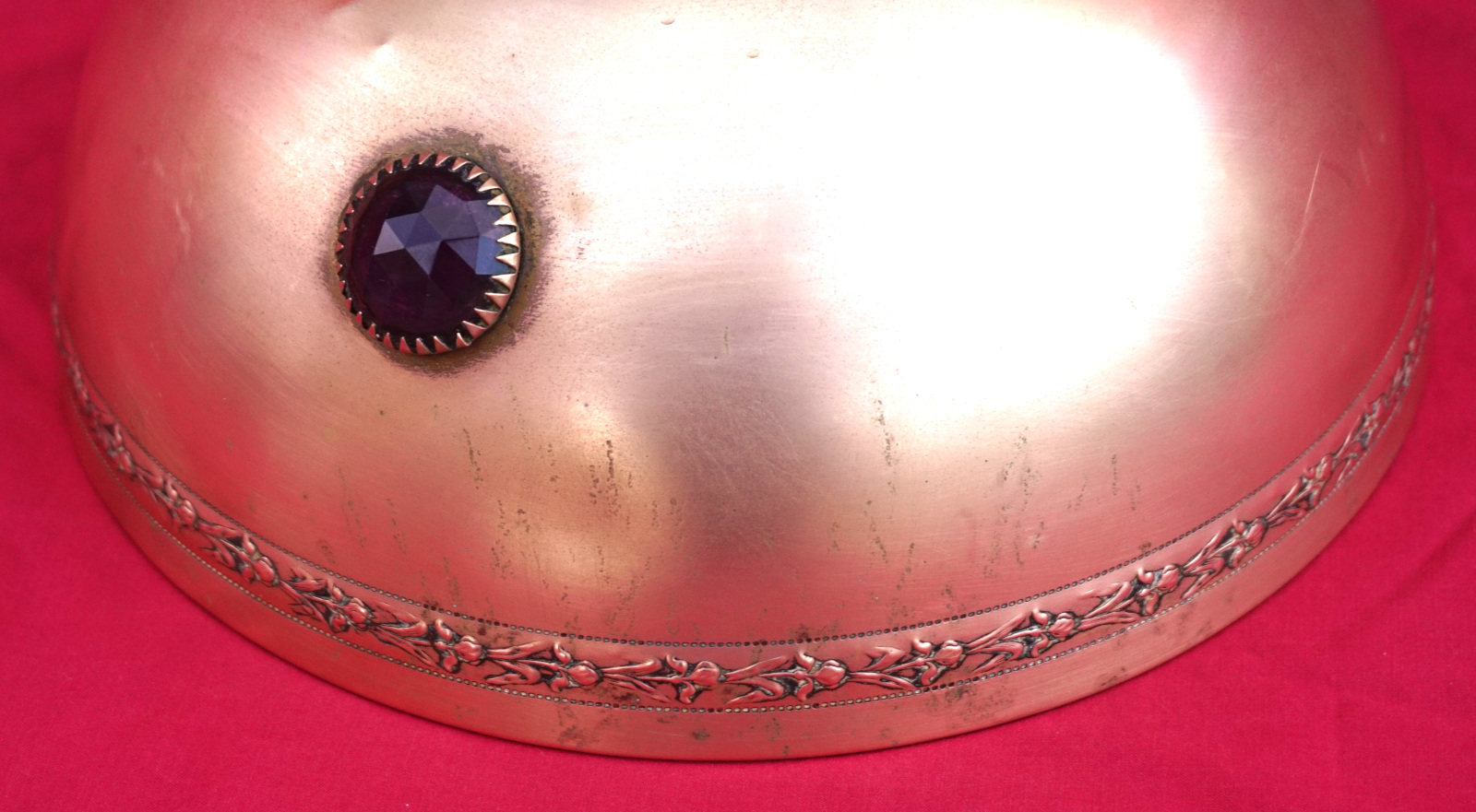 Brass Shade Colored Glass Stone Garland Embossed 1900 Ø 9"