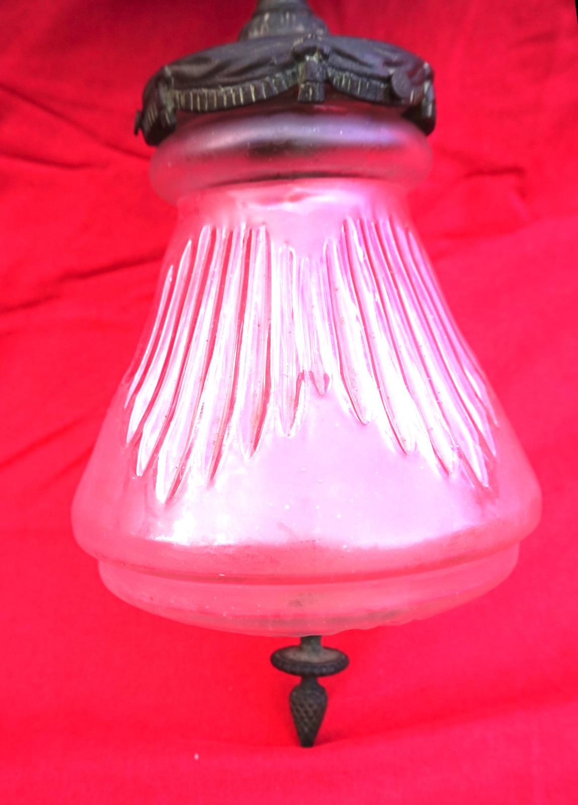 Ceiling Light Chandelier Brass Fixture Cut Frosted Crystal Shade 1900's