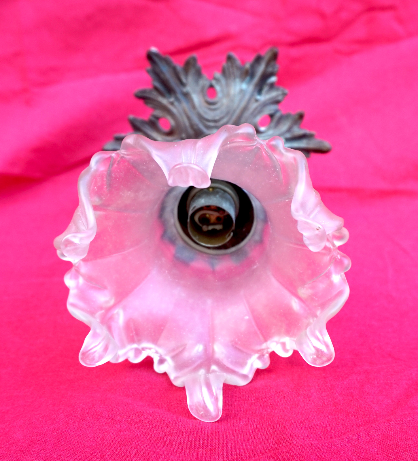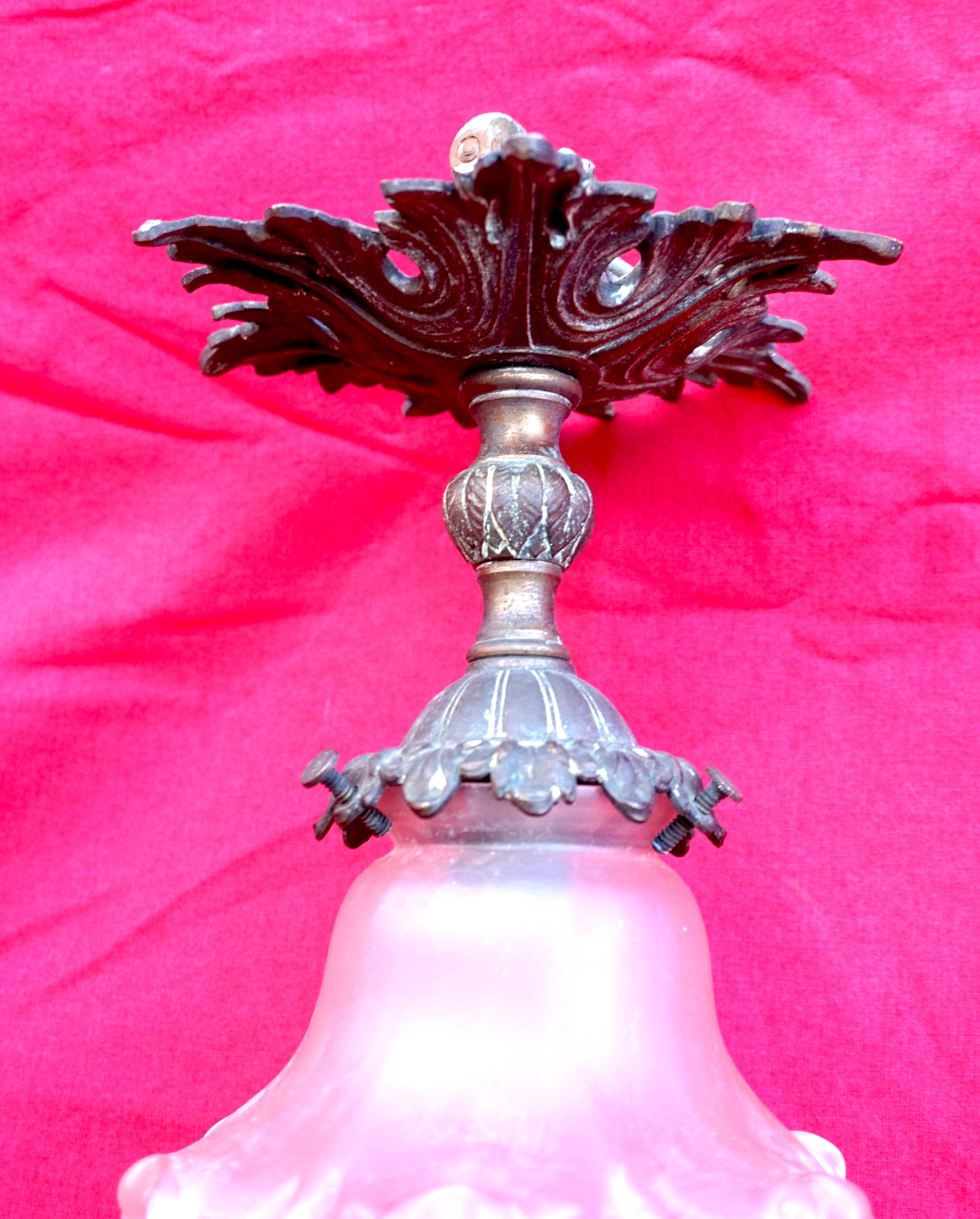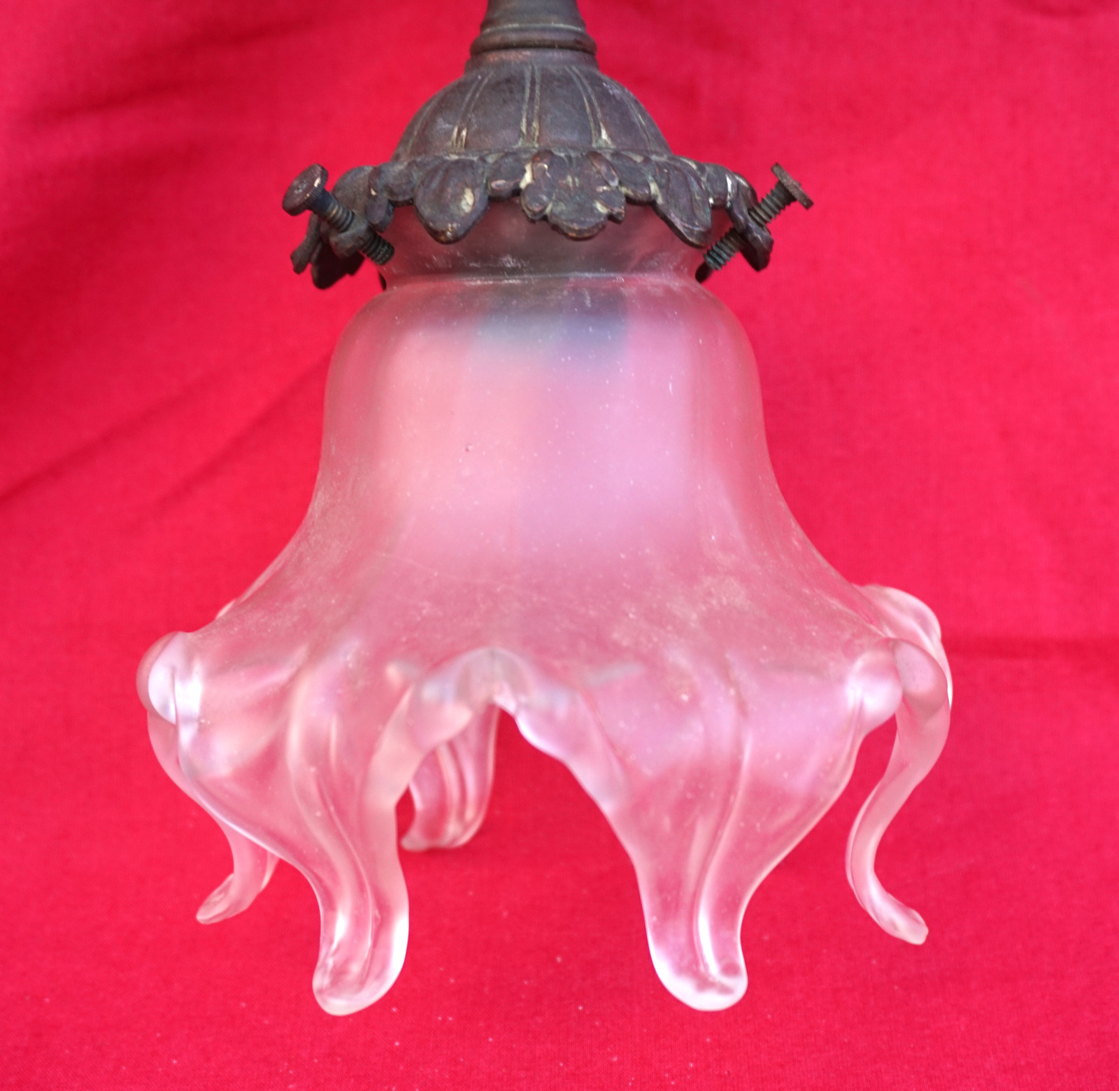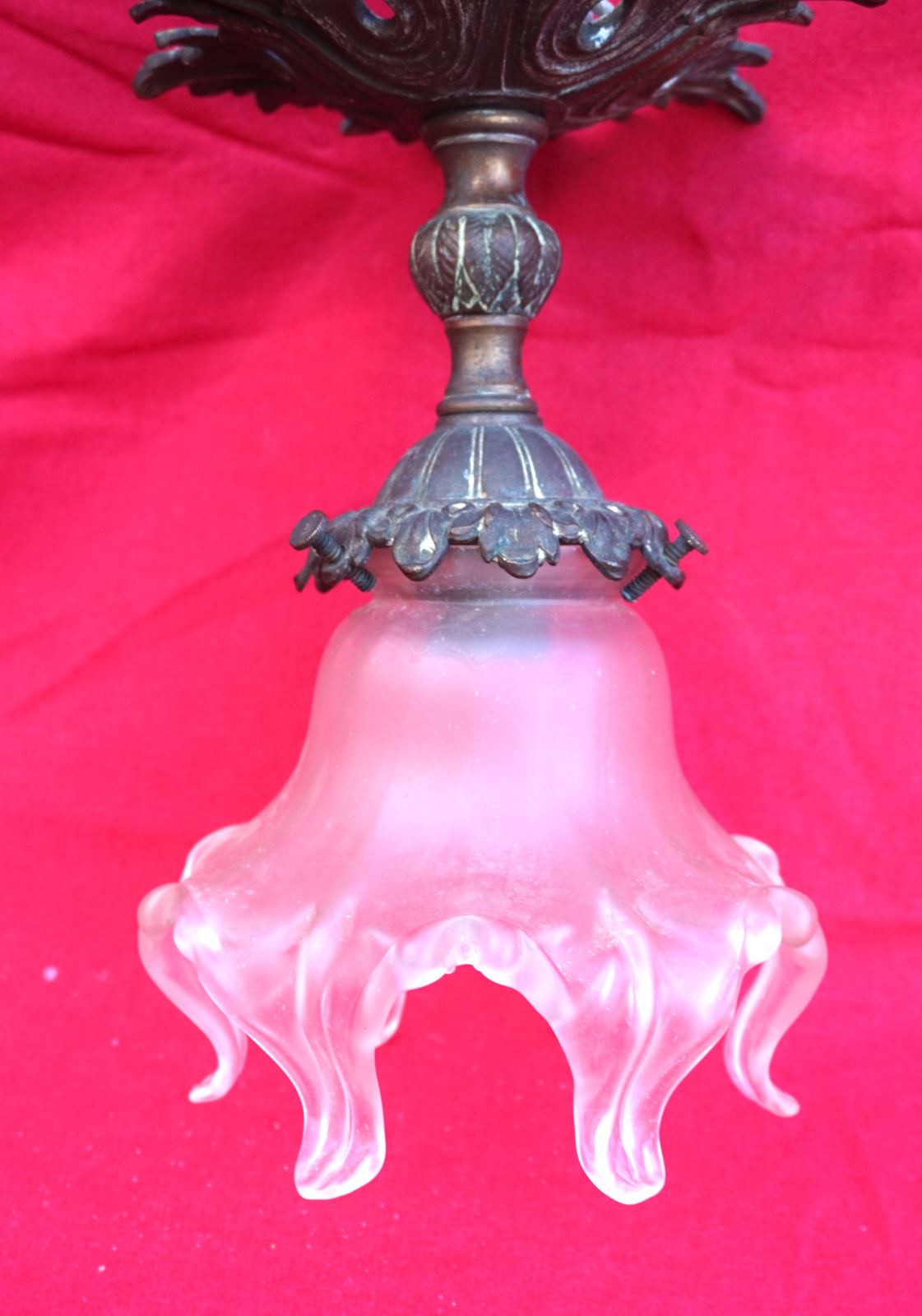Ceiling Light Chandelier Frosted Glass Tulip Shade Brass Fixture 1900's