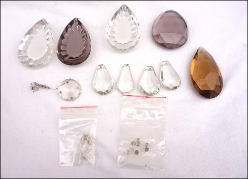 Chandelier 6 Lights Colored Crystal Glass Gilt Metal Ceiling Light Need Repair