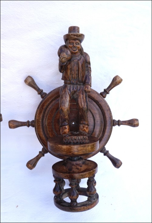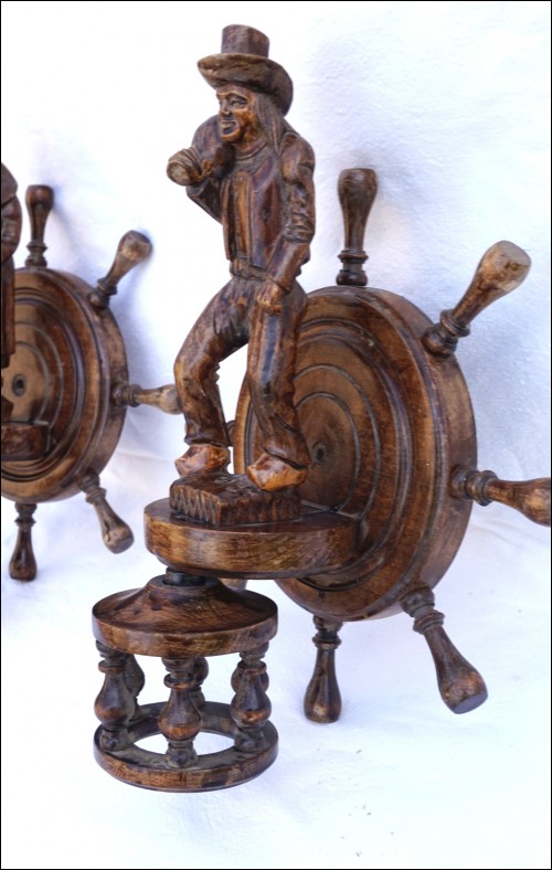 Couple of Breton Statue Figure Sconce Wall Light Pair Quimper Carved Wood Vintage