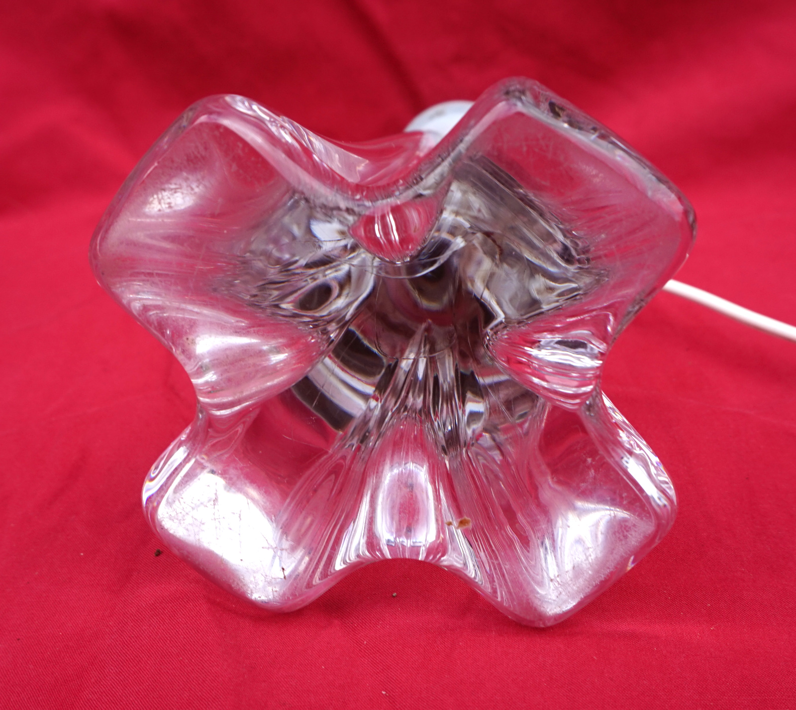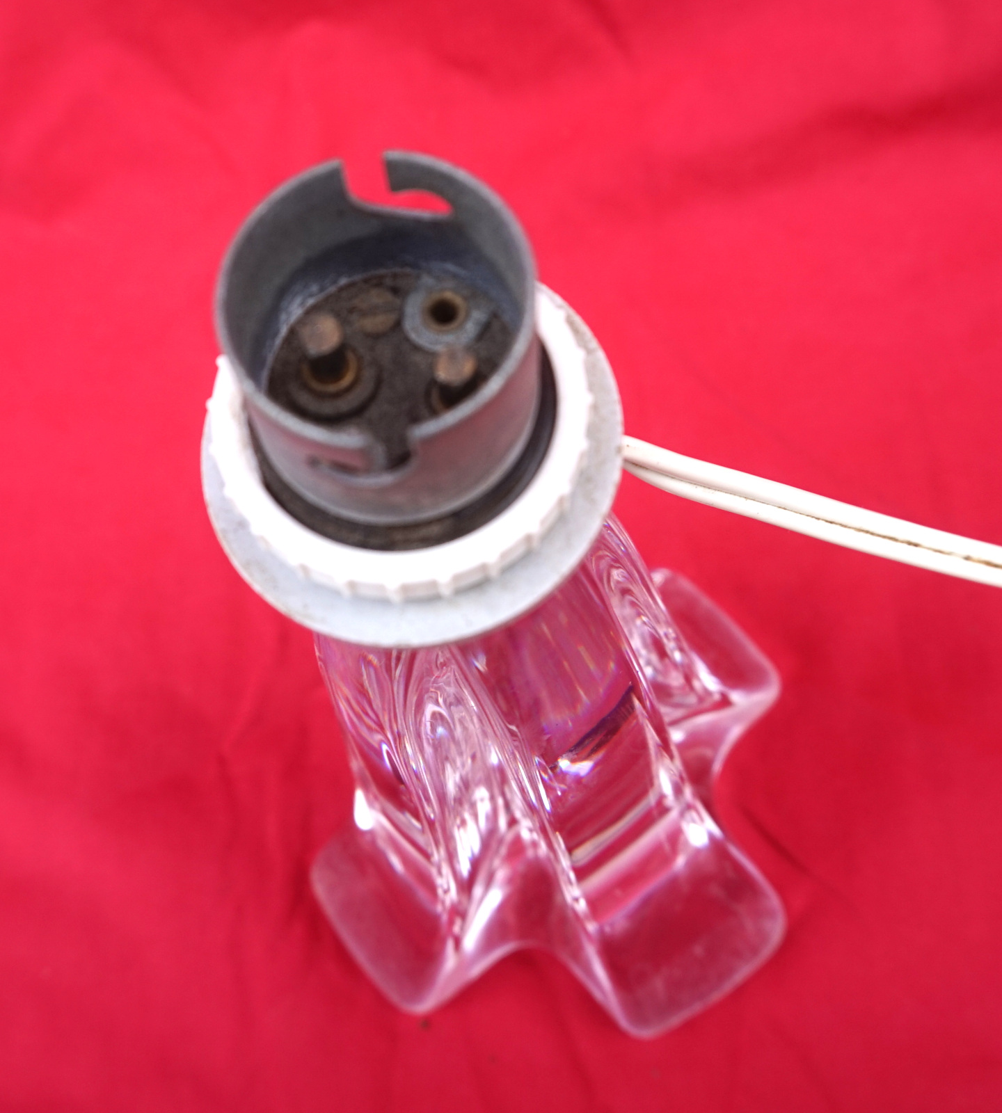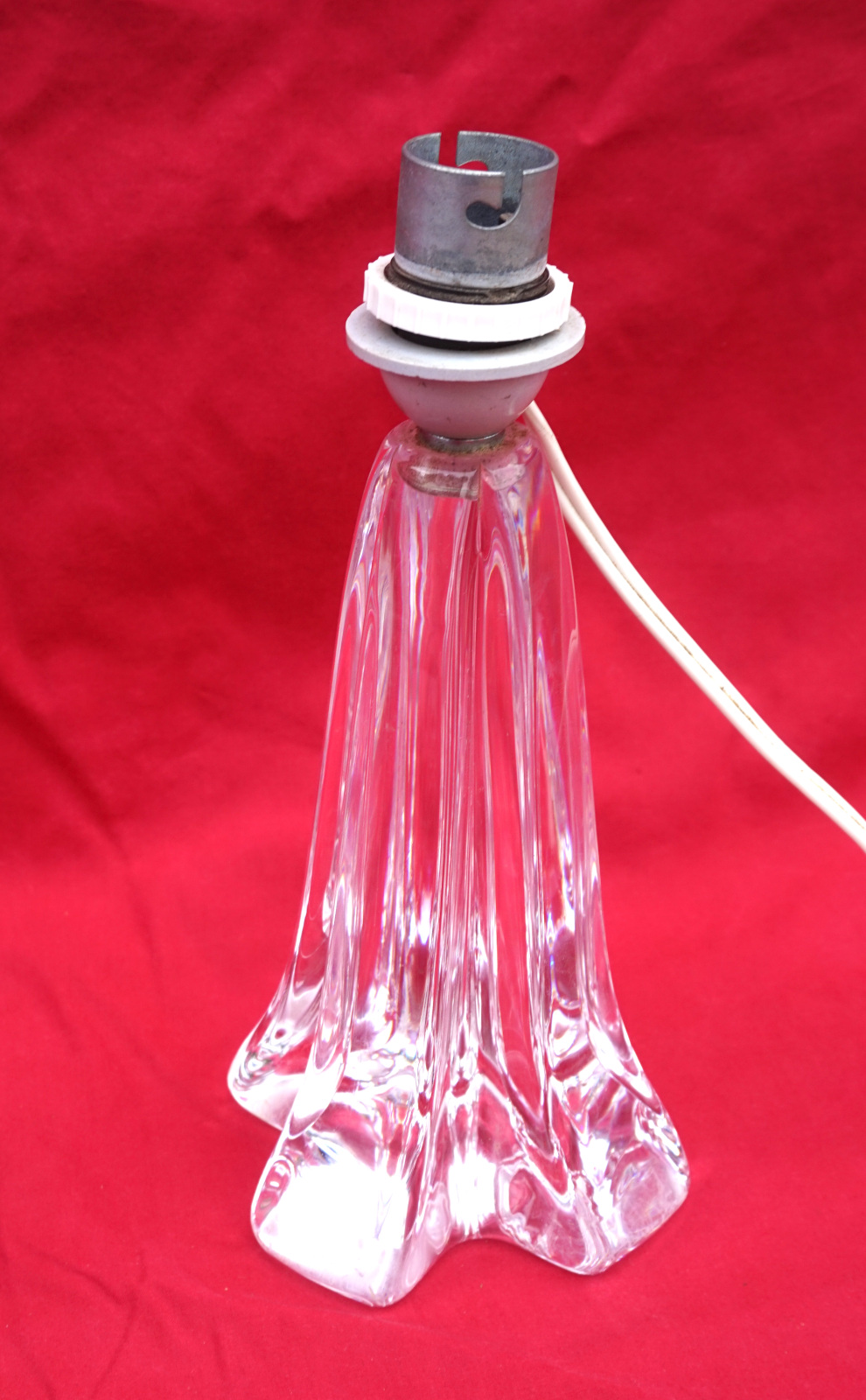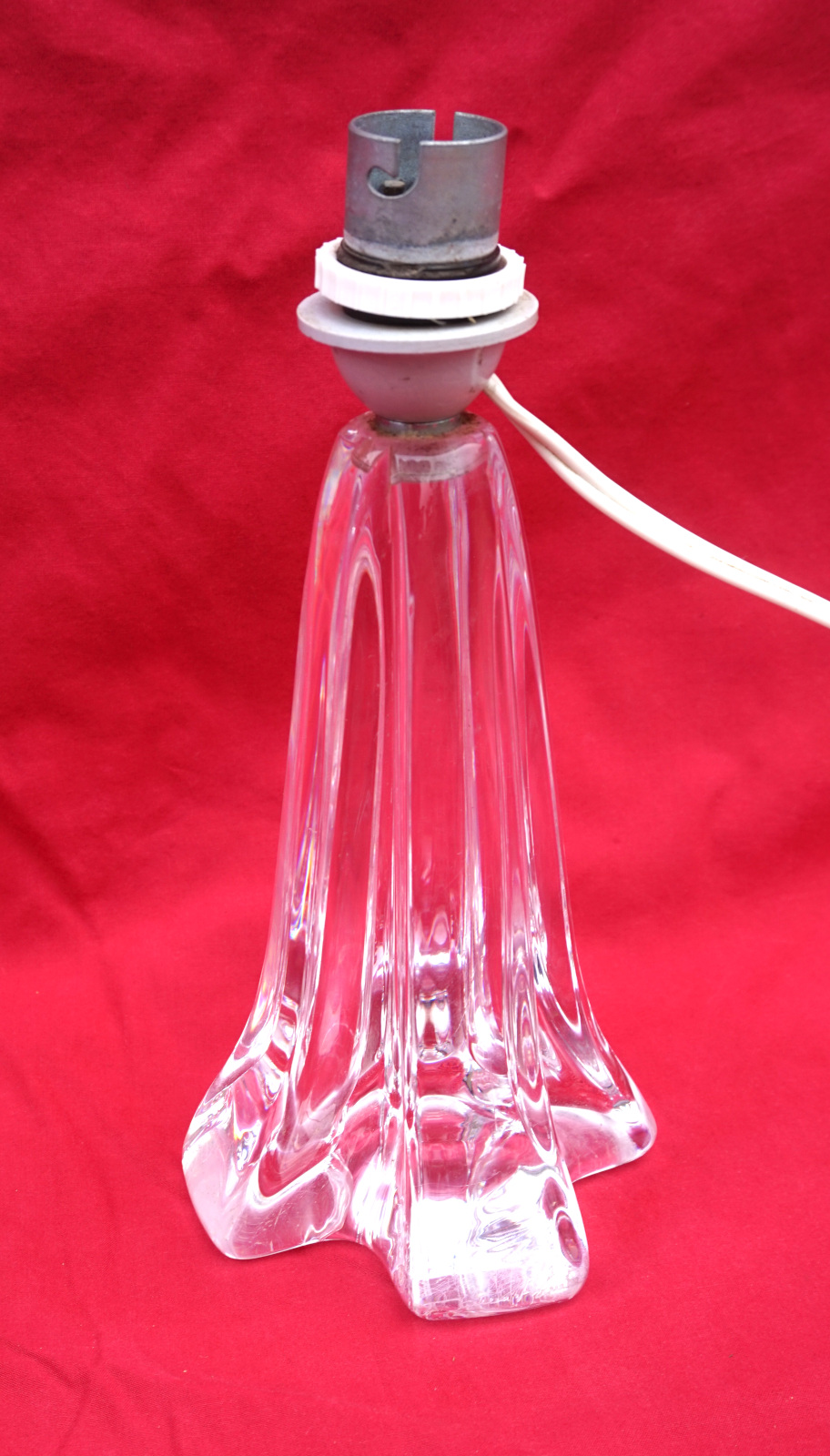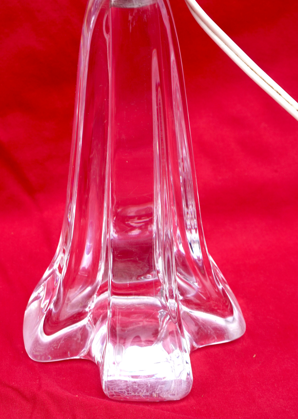French art glass clear crystal lamp base made by DAUM FRANCE during the 1970's. It's signée on the base. 8" (20.5cm) height, 3 1/2" (9.5cm) diameter to the base. It needs to be re-wired. Good condition a few small scratches to the base as shown by the following pictures.