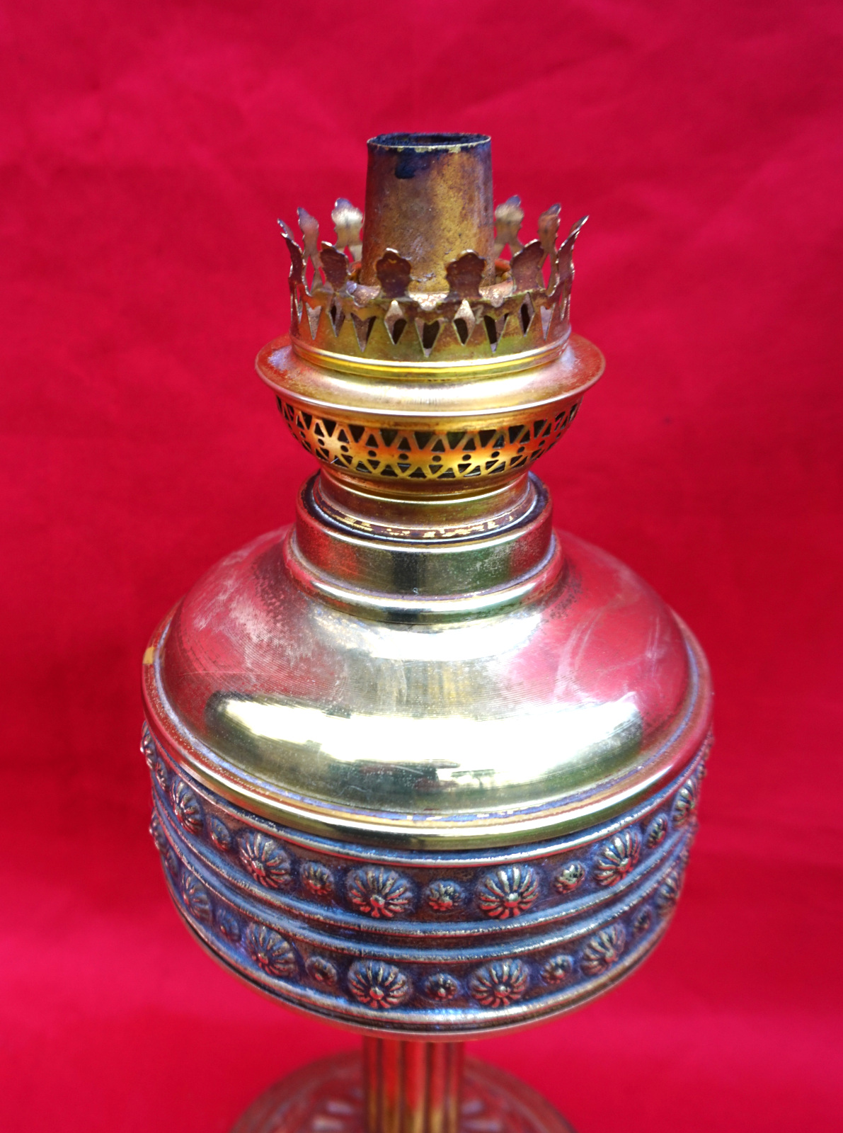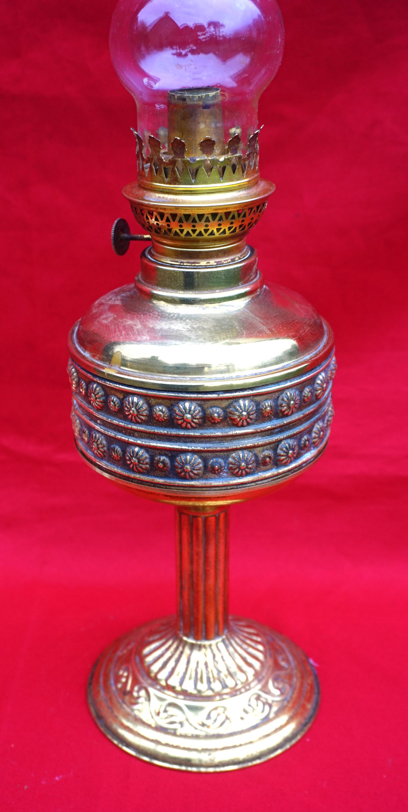 Embossed Brass Oil Lamp Kosmos Burner 1920's