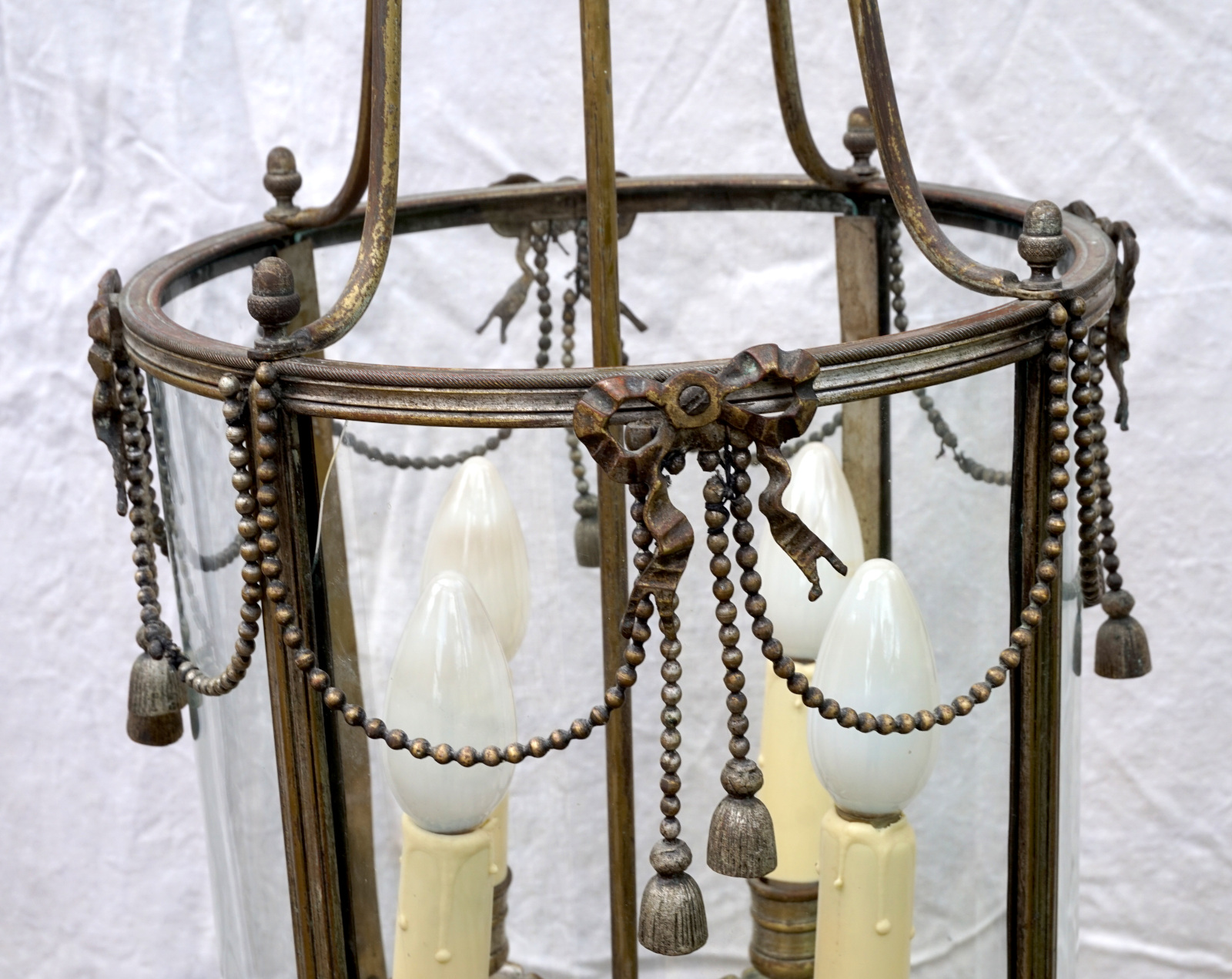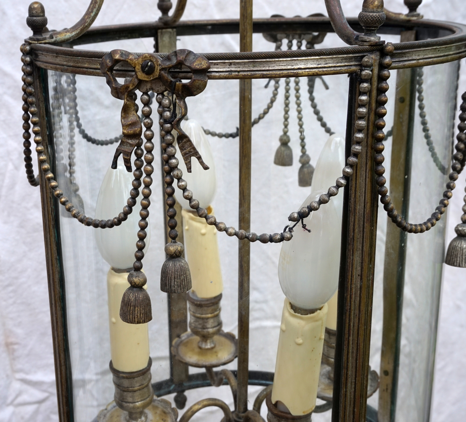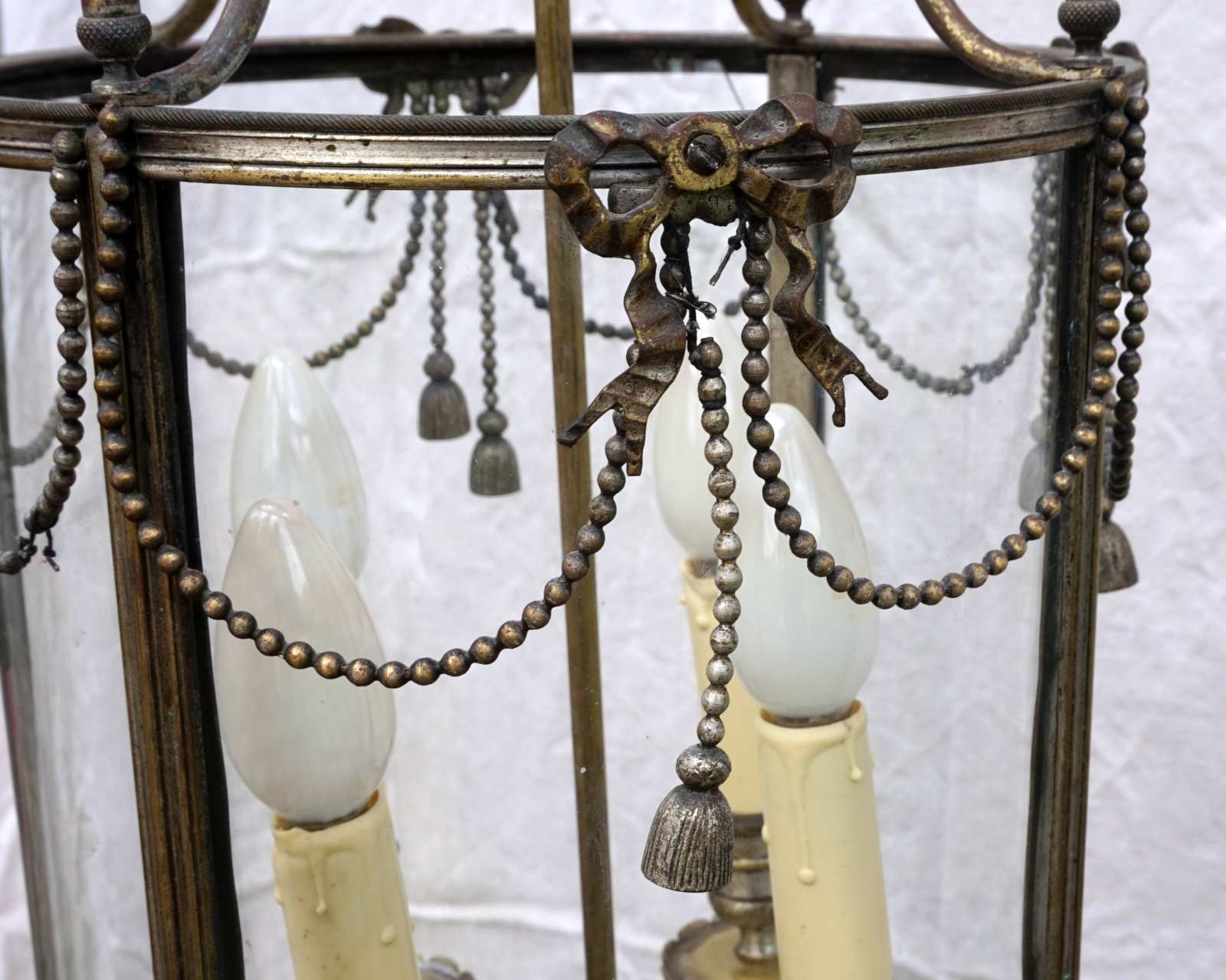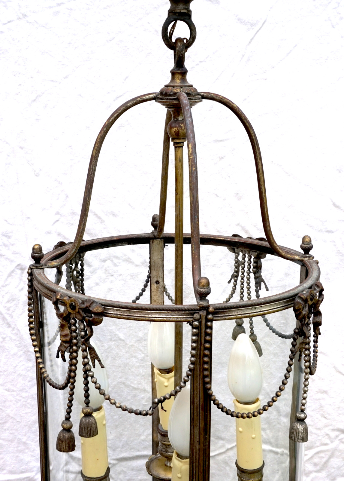 Hall Lantern Chandelier Silver Bronze 4 Light Louis XVI style Ribbon Signed 1930's