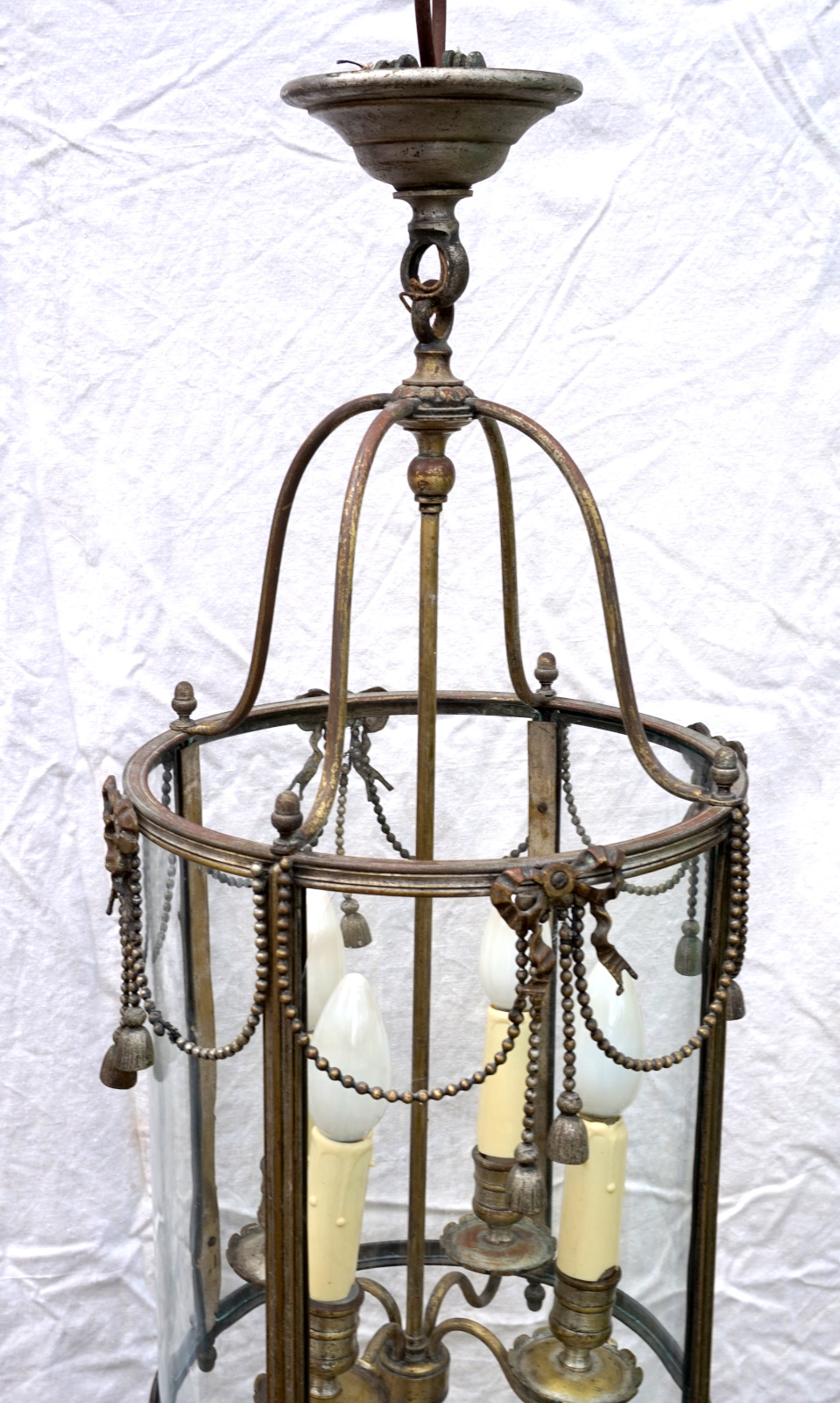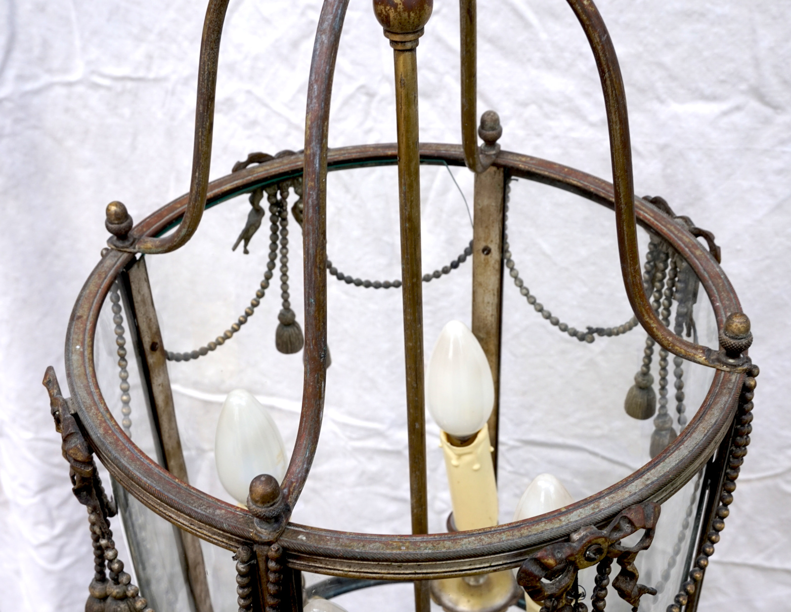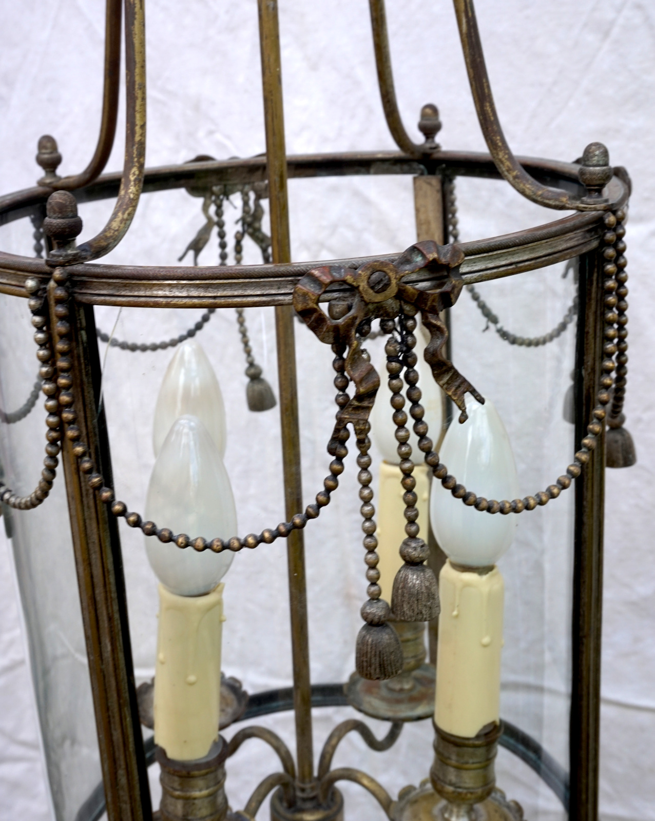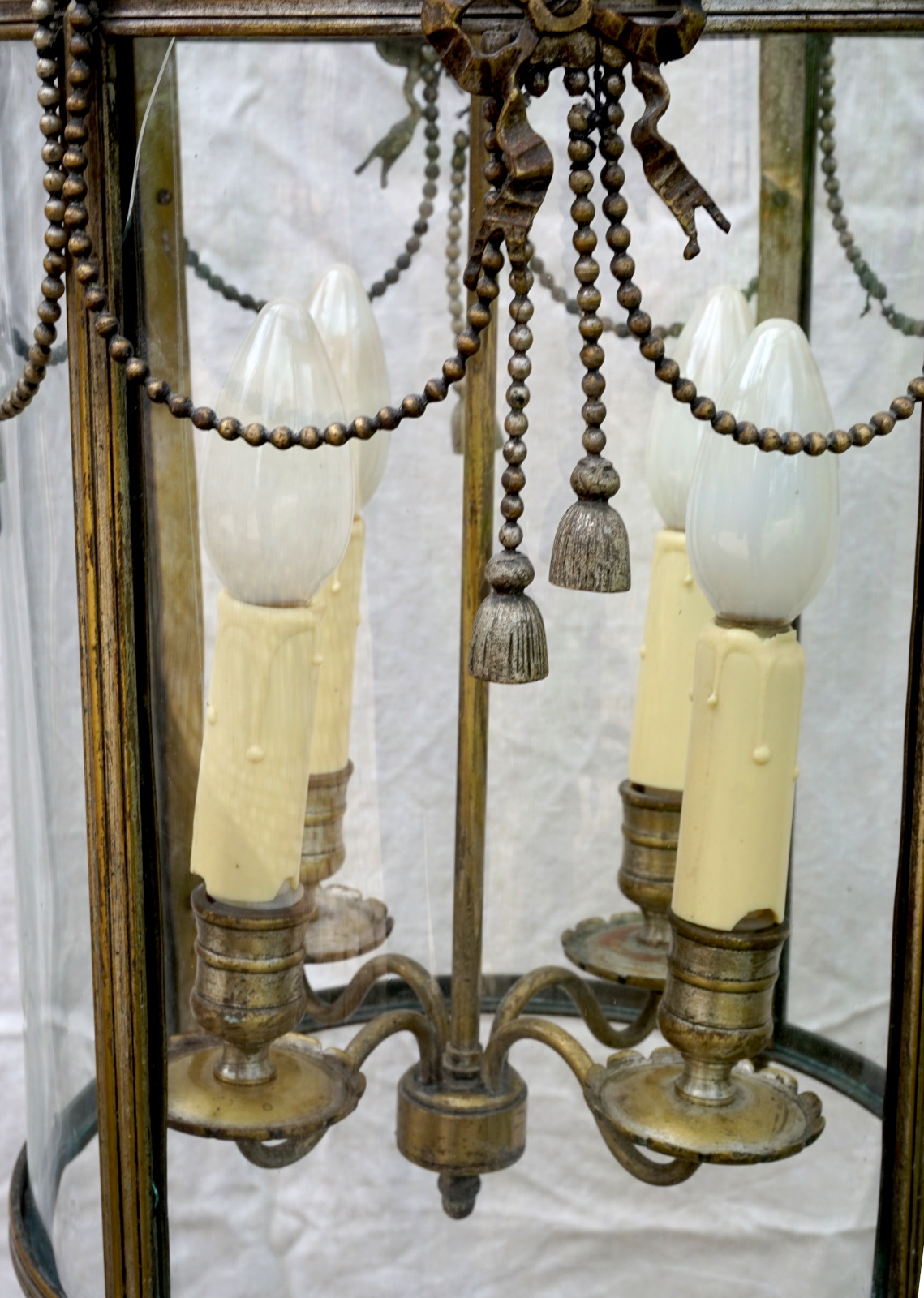 Hall Lantern Chandelier Silver Bronze 4 Light Louis XVI style Ribbon Signed 1930's