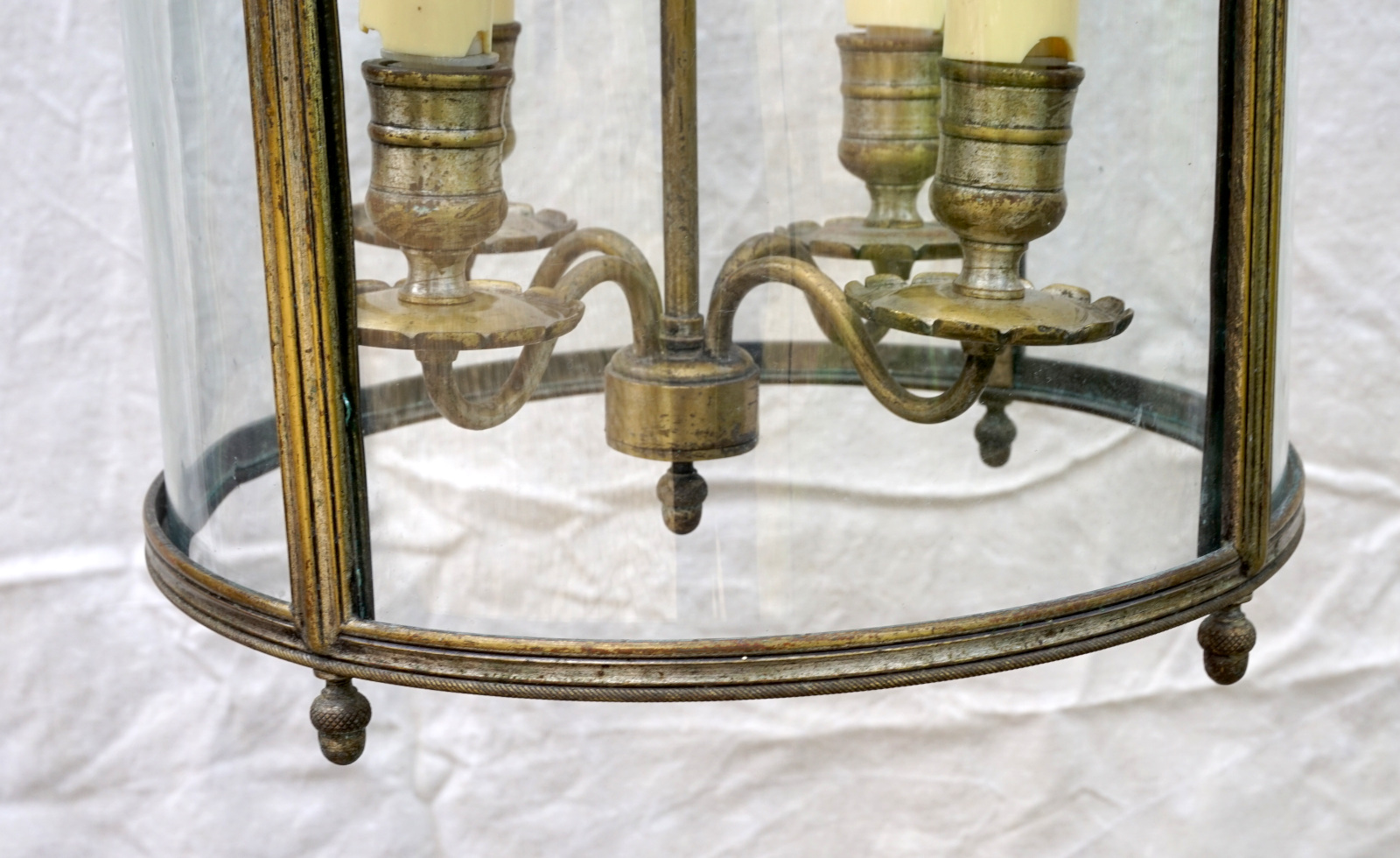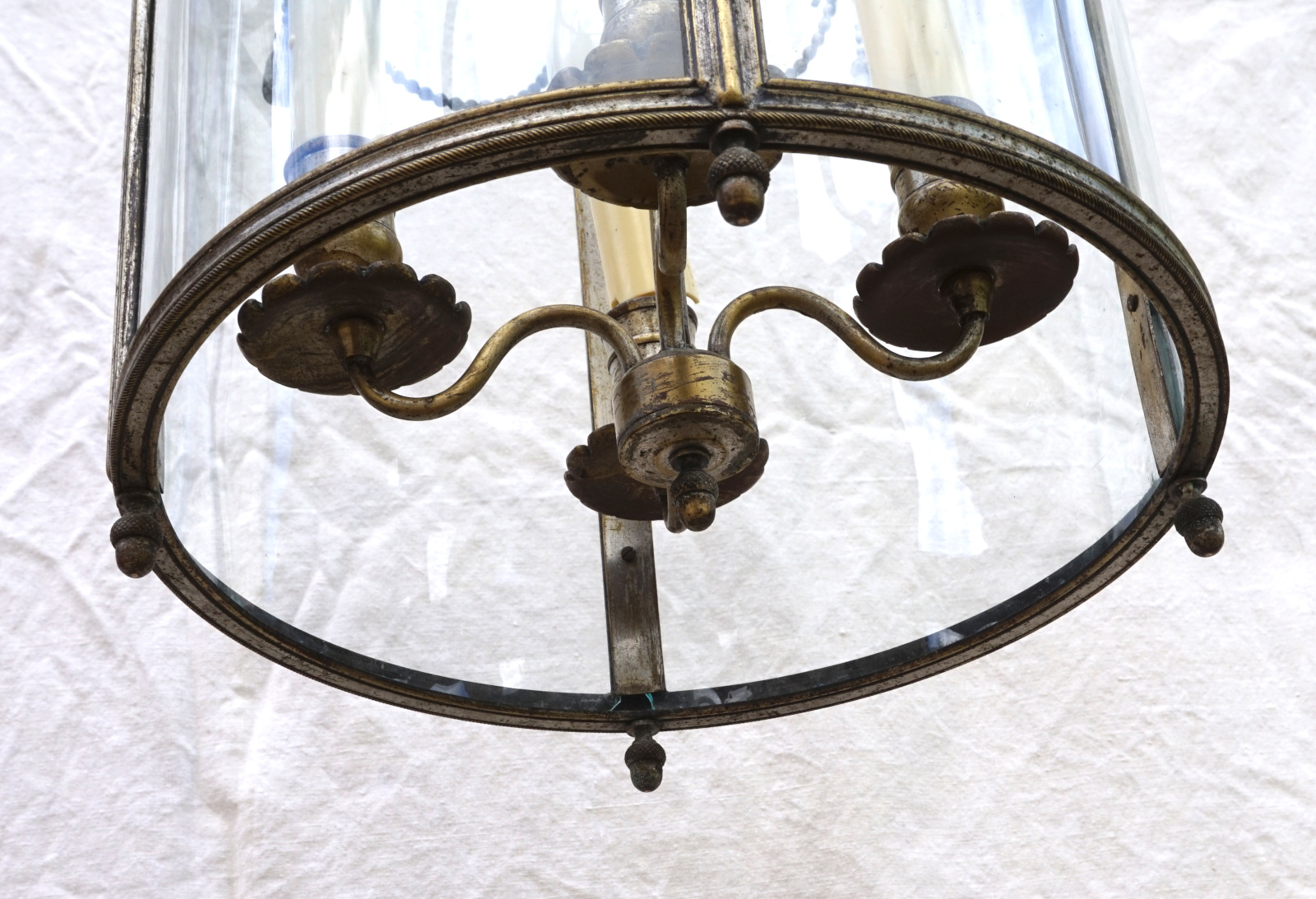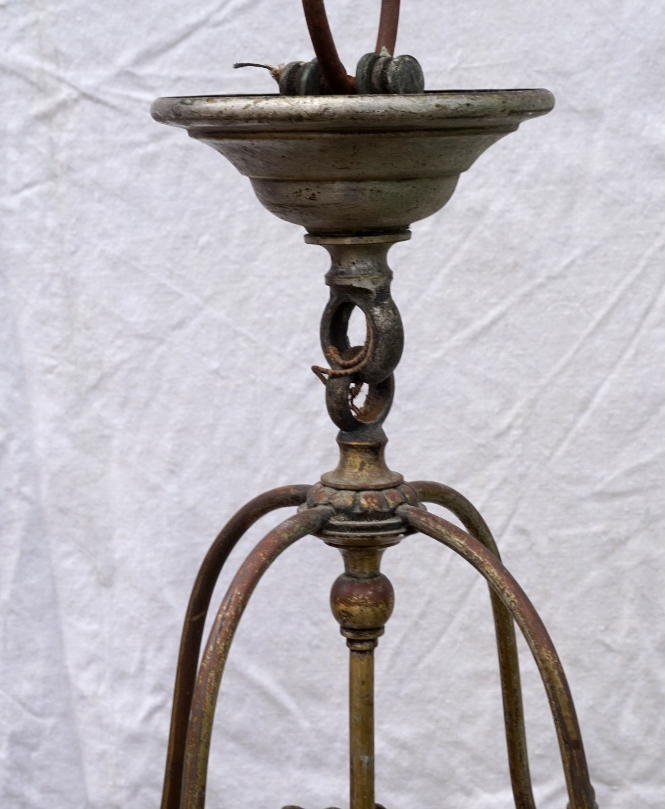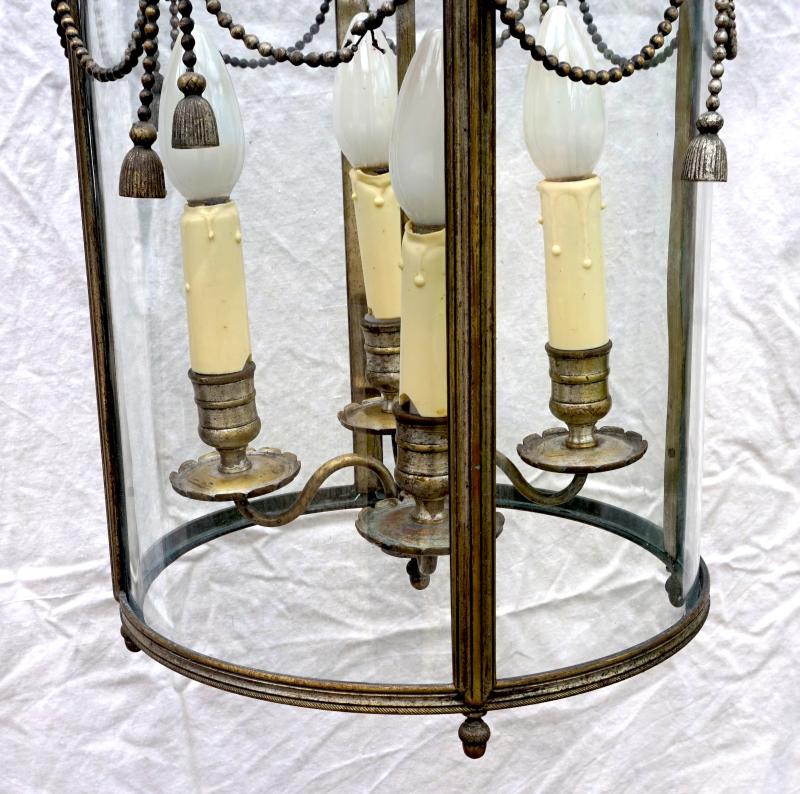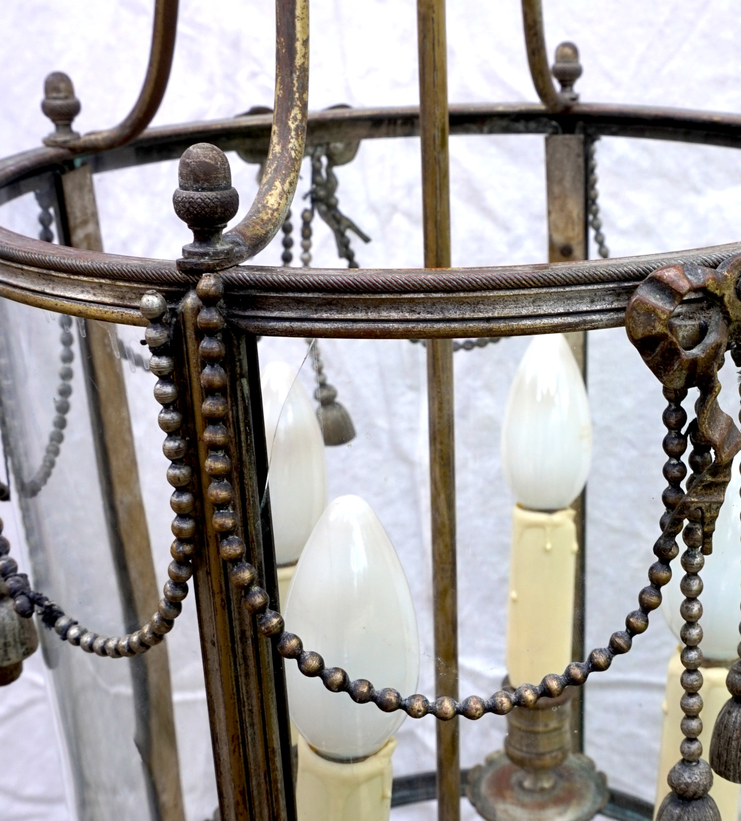 Hall Lantern Chandelier Silver Bronze 4 Light Louis XVI style Ribbon Signed 1930's
