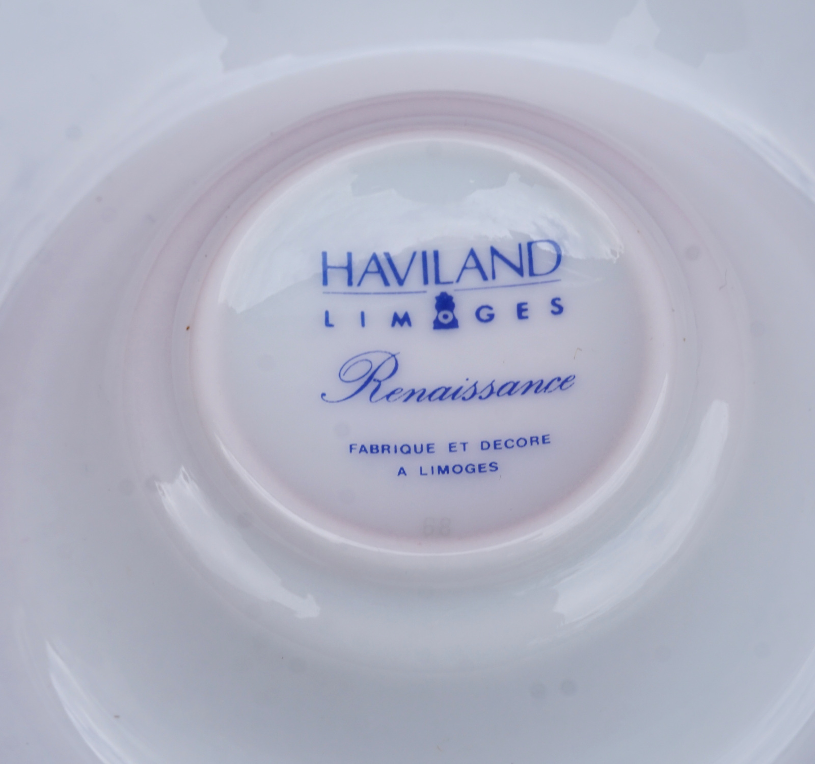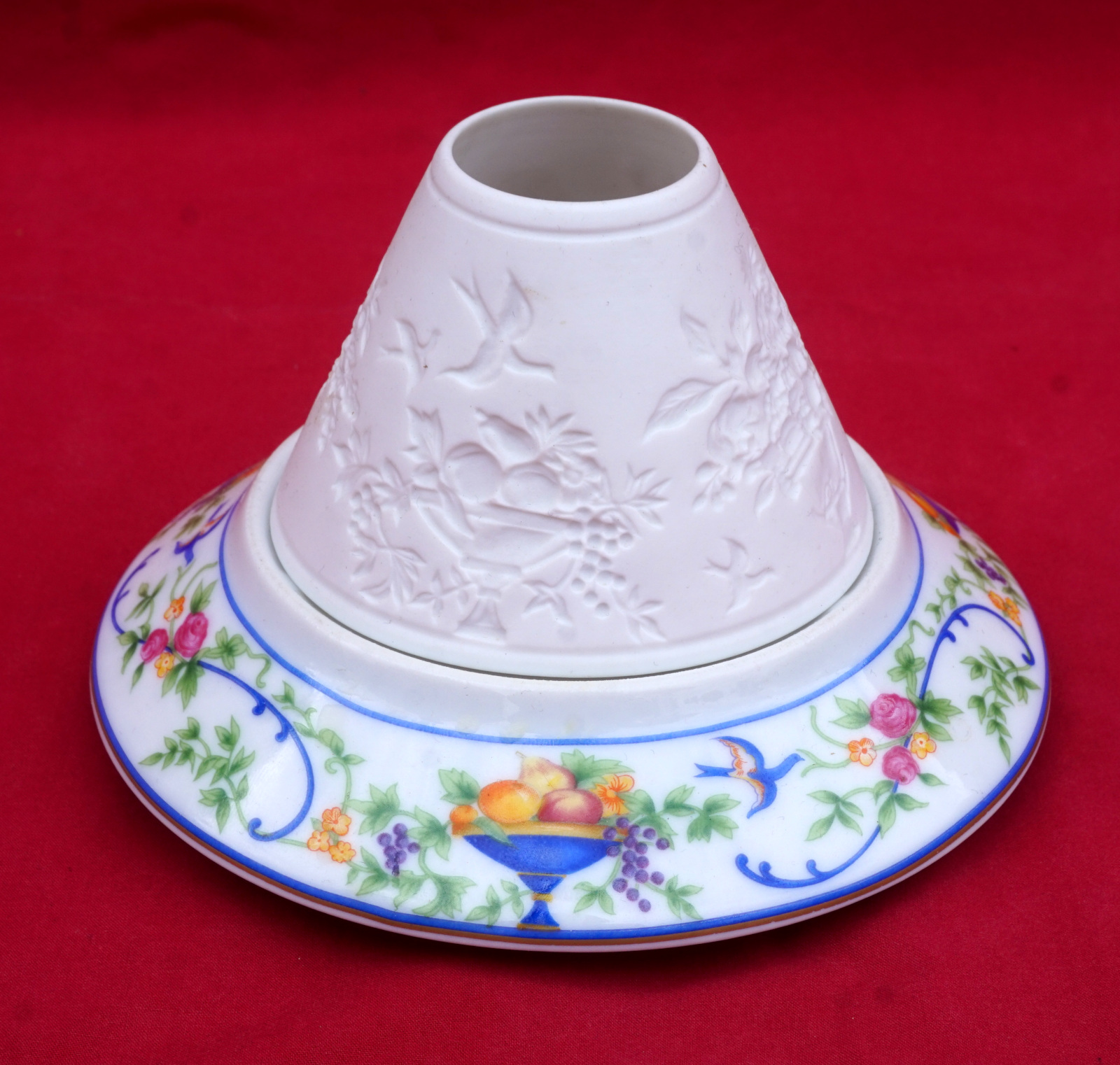 French transferware porcelain and bisque lithophane candle holder night light Renaissance model made by Haviland Limoges. It's signed on the back. 5 3/8" (13.7cm) diameter, 3 3/8" (8.5cm) height. Perfect condition.