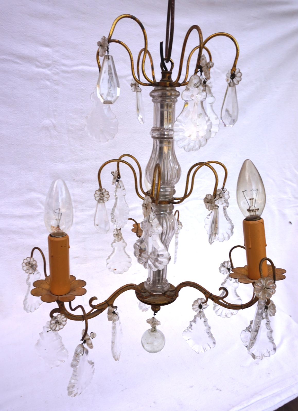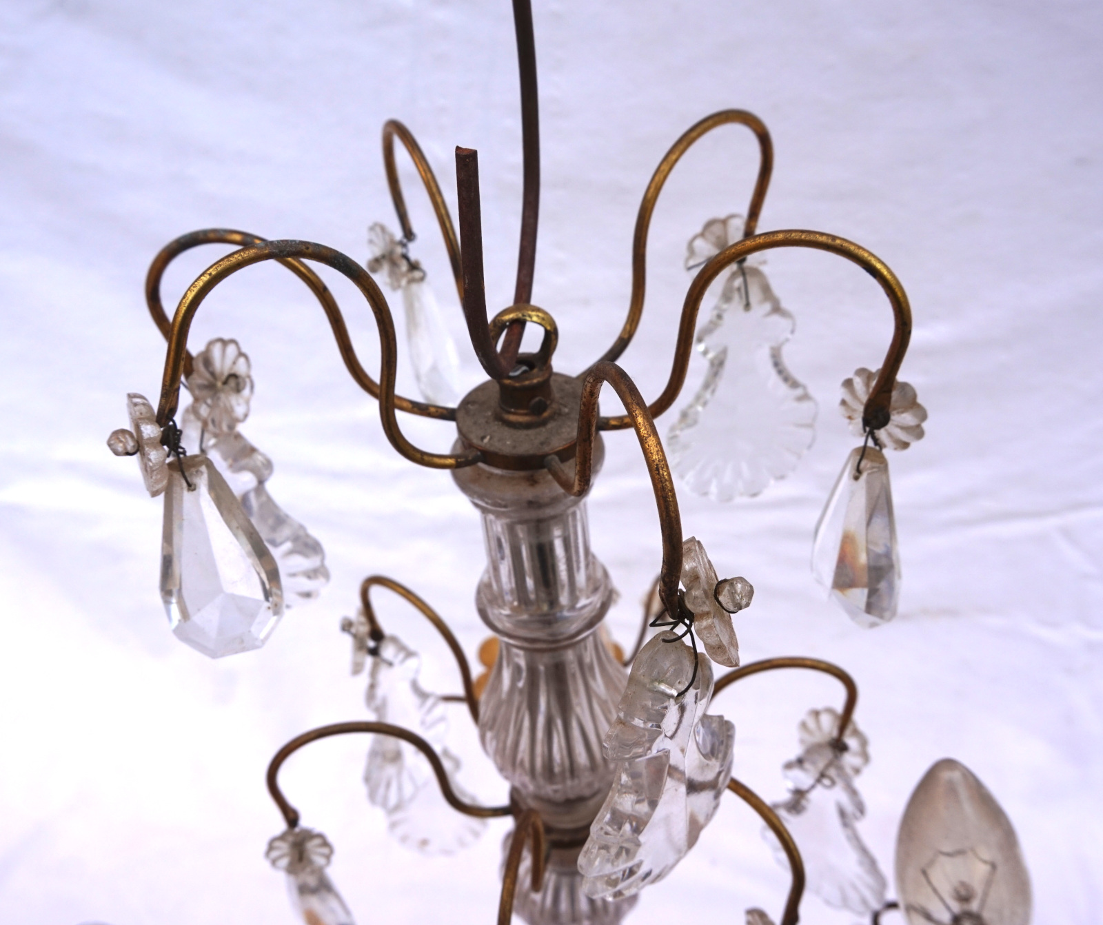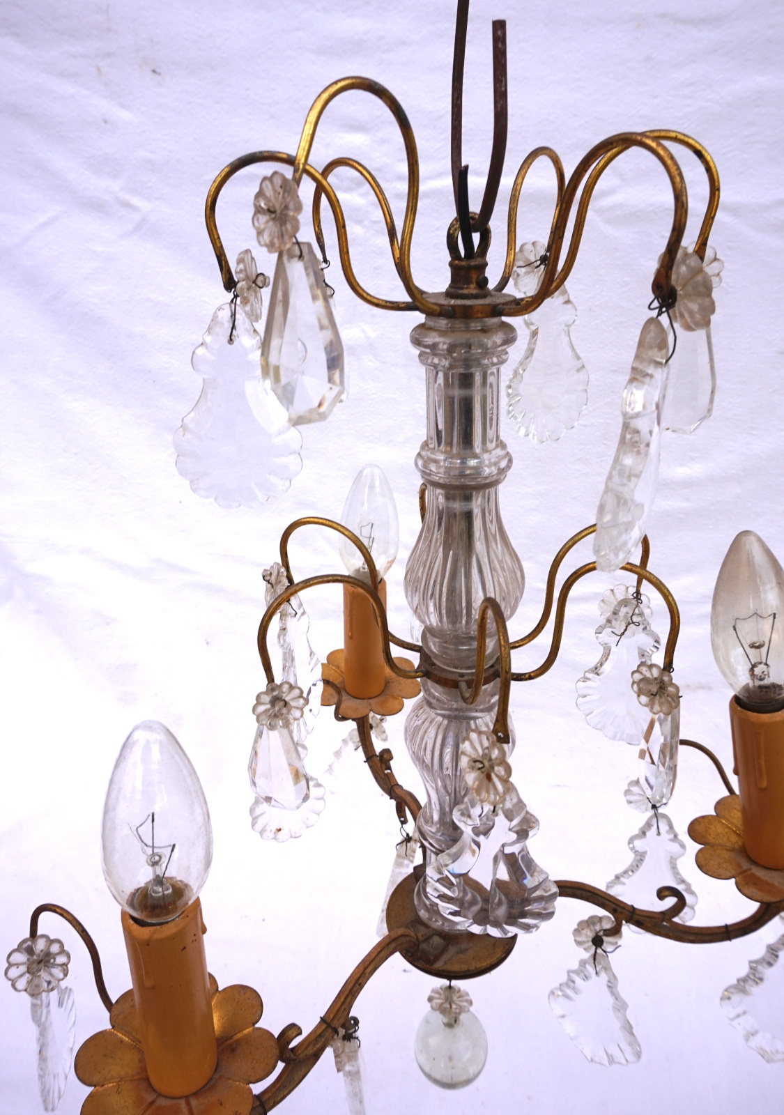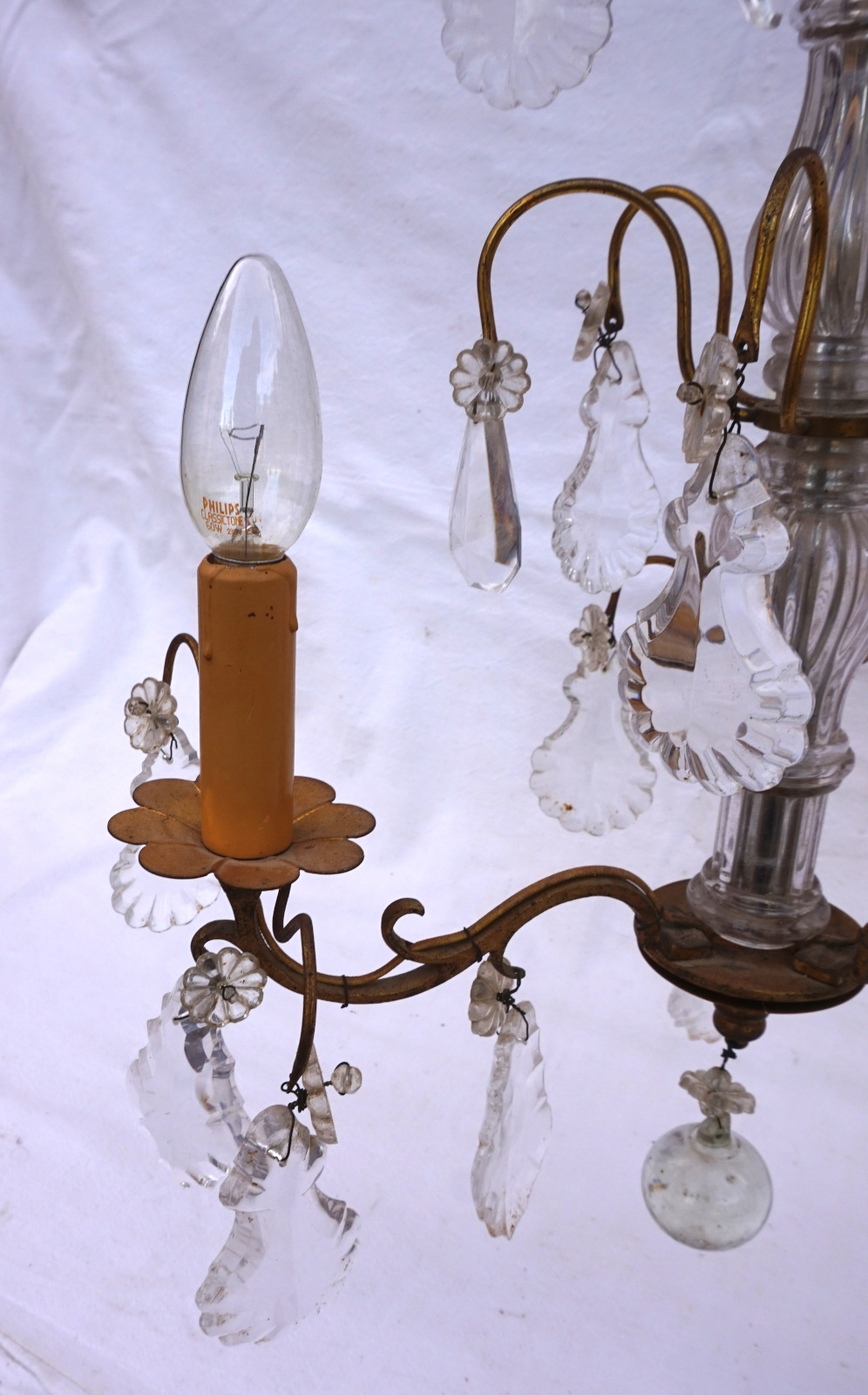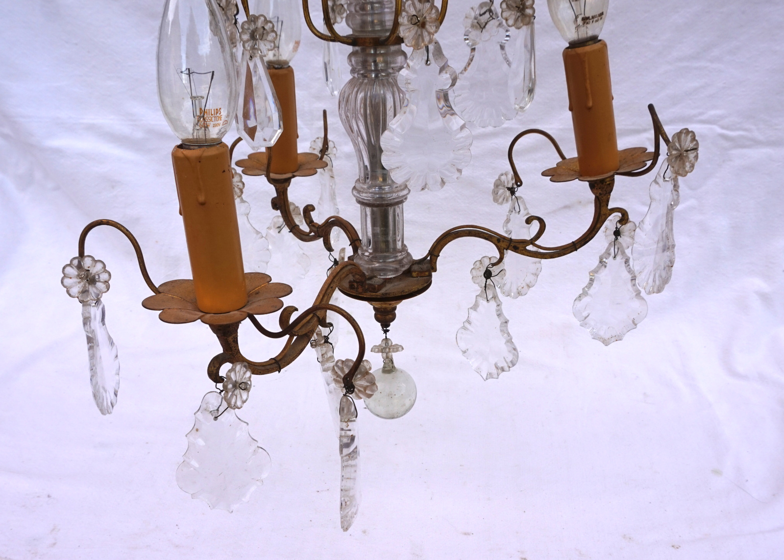Louis XVI style Brass Bohemian Crystal 3 Lights Chandelier Ceiling Light 1940's