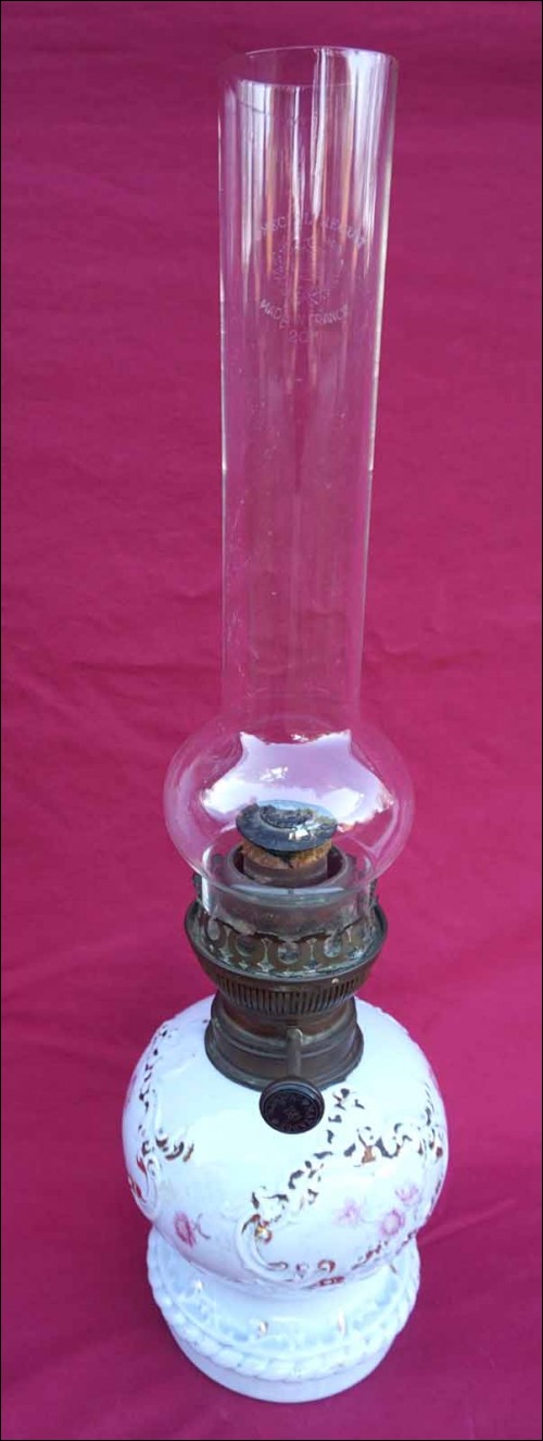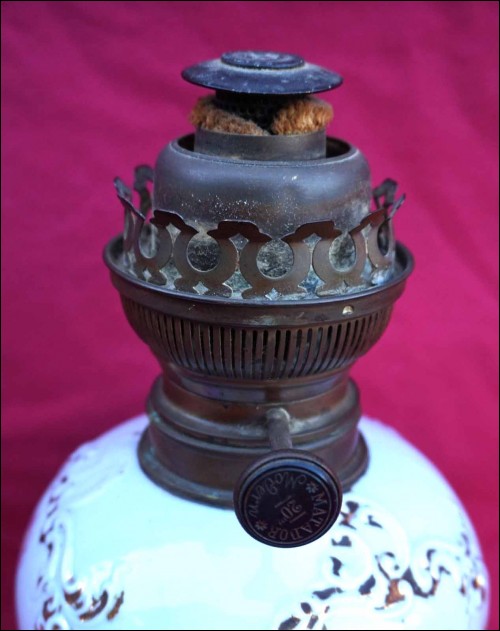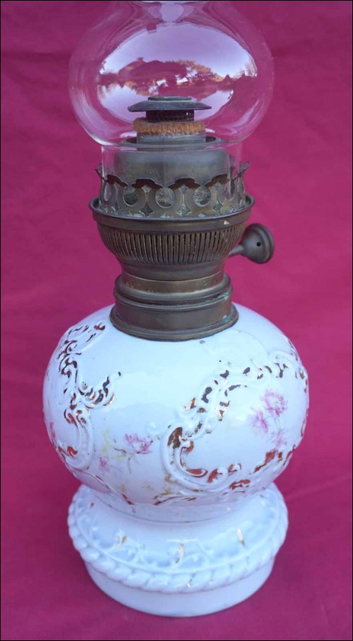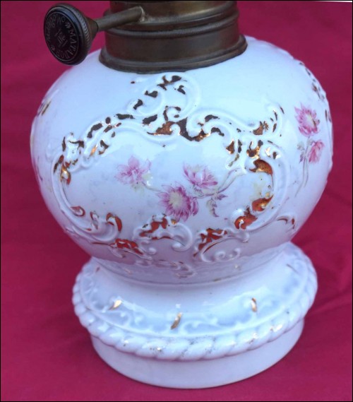 Oil Kerosene Lamp Gilt Flower Old Paris Porcelain Matador Burner