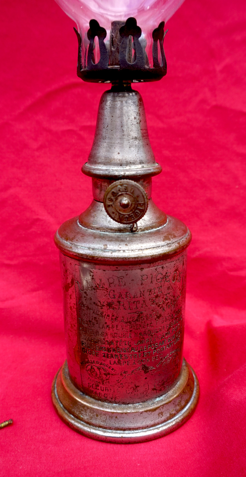 PIGEON Oil Lamp with Shade Swallow Hirondelle Chromium Brass 1900's