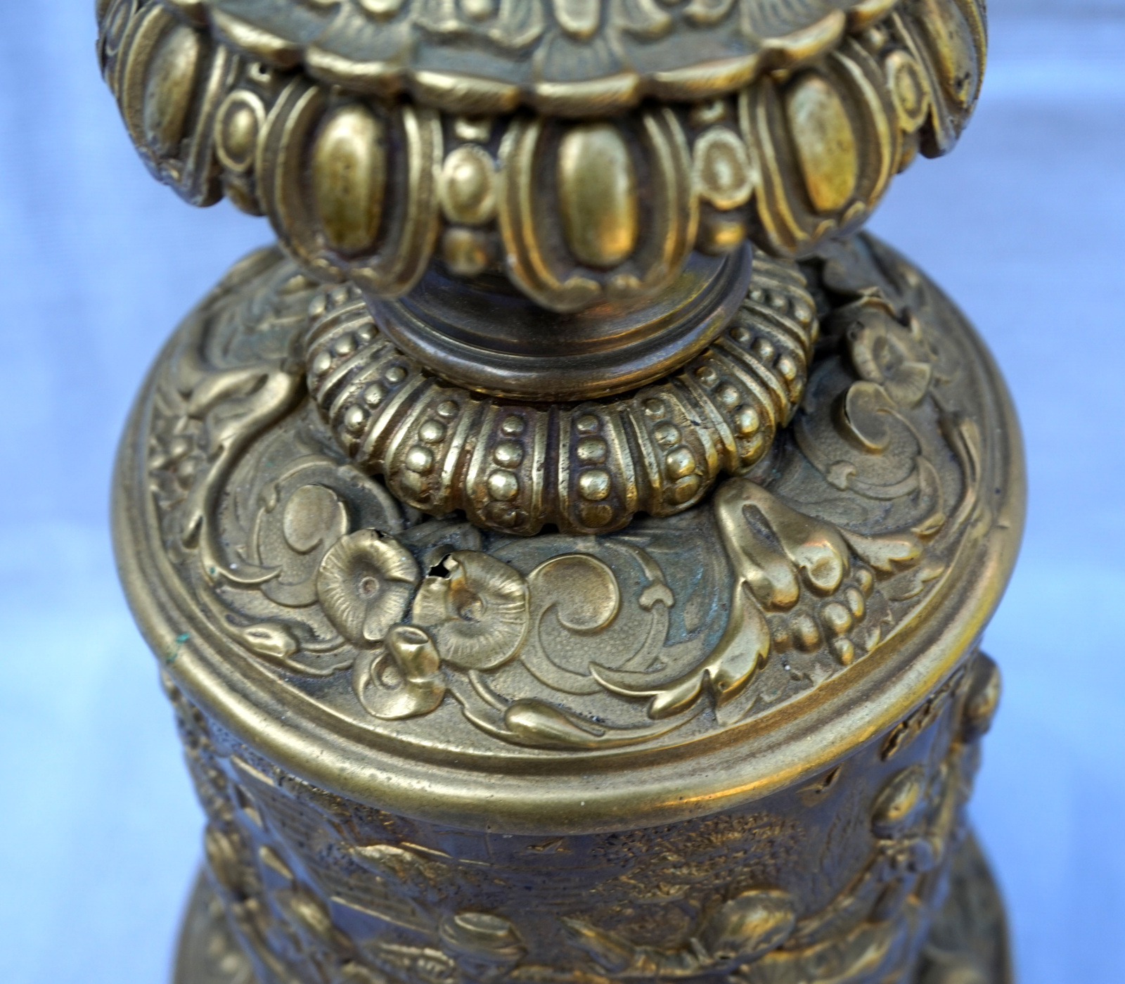 Repousse Brass Oil Lamp Base Villagers Tavern 1880's Need Repair