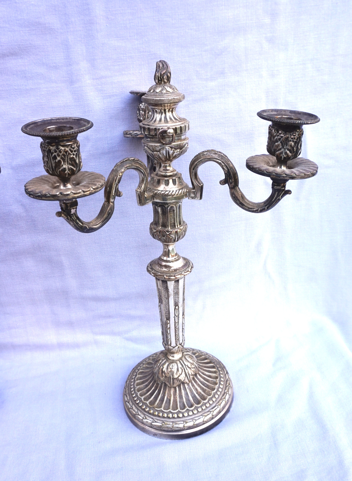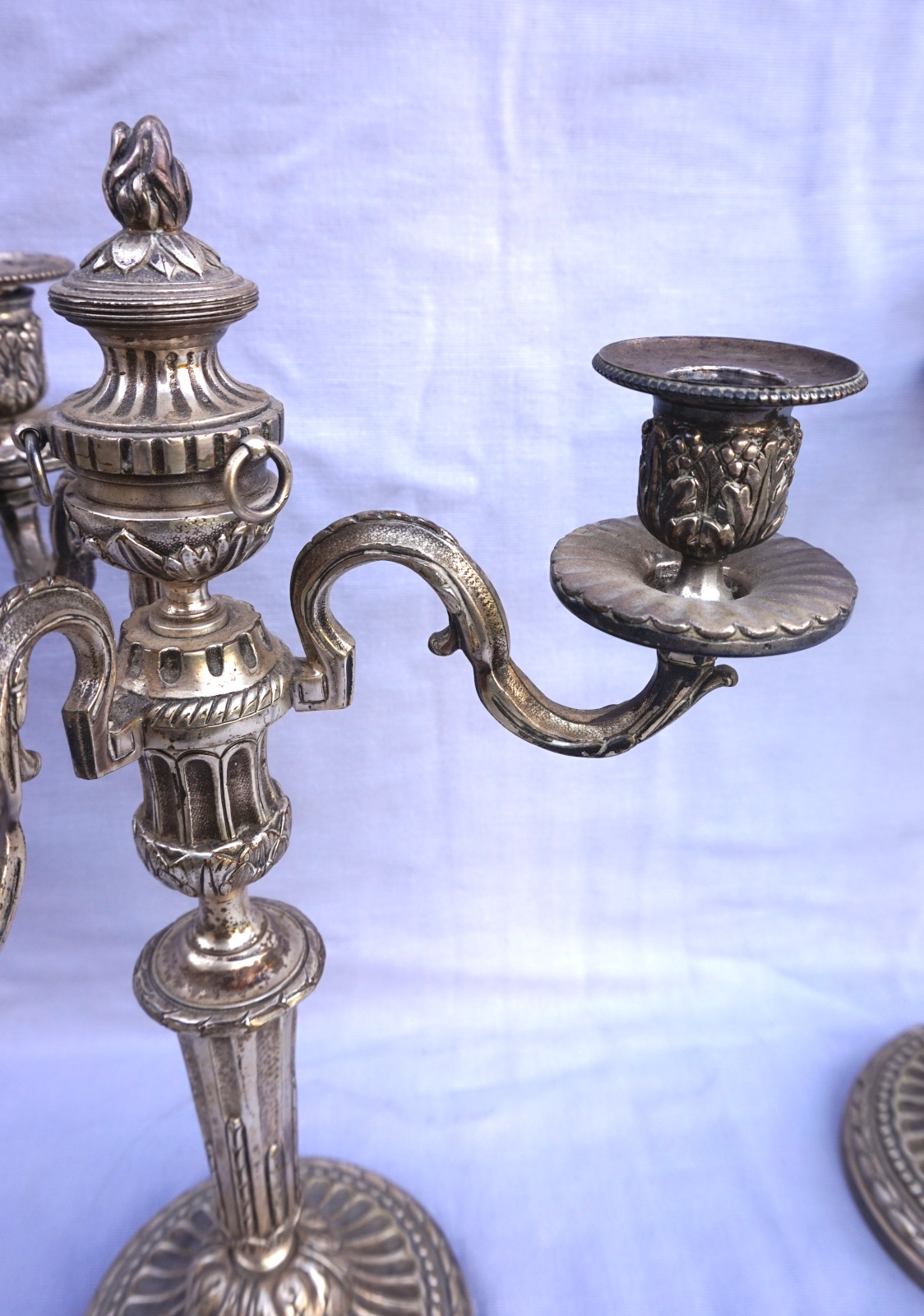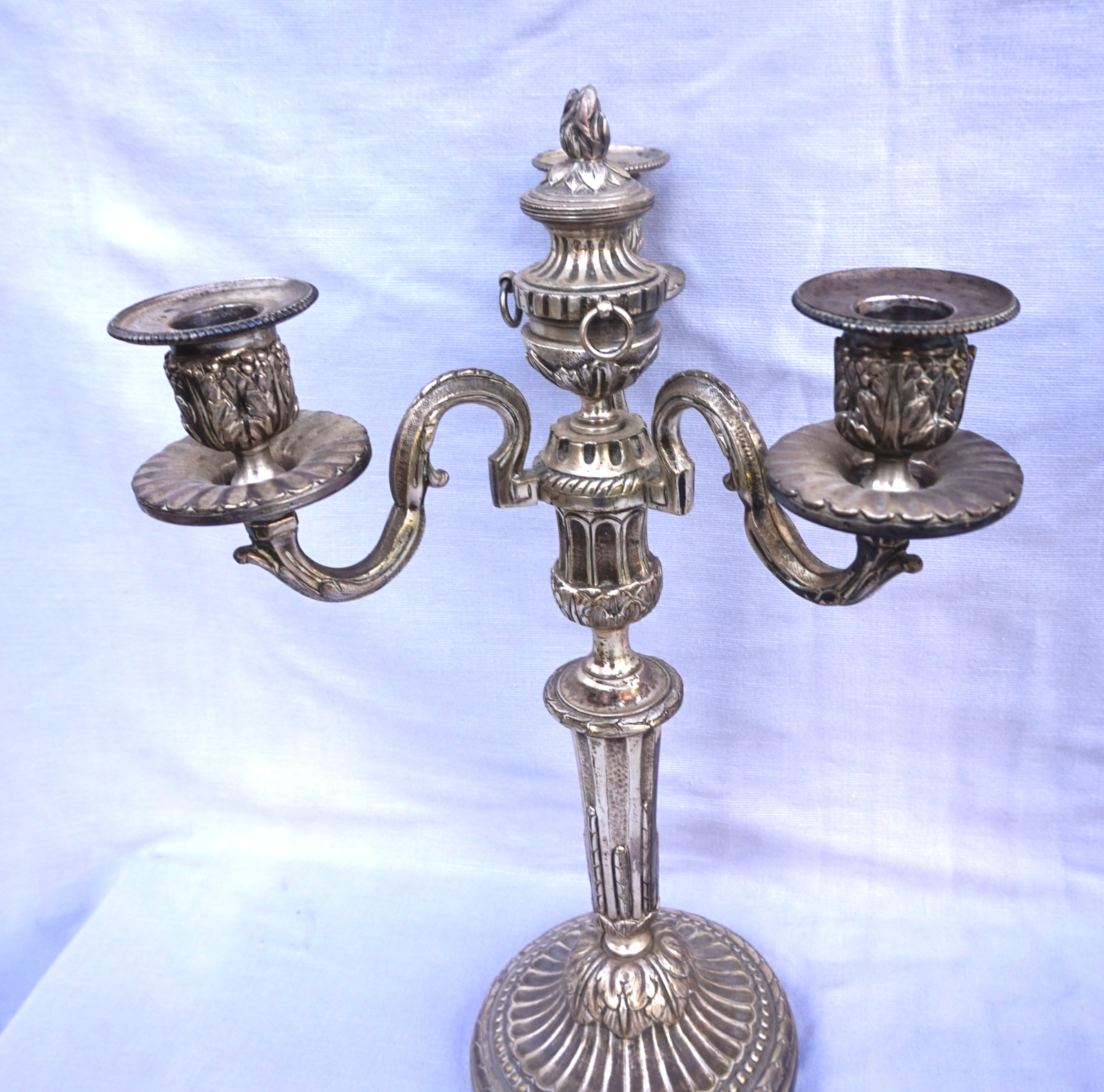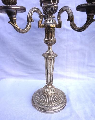 Silver Plated Brass Candelabra 3 Lights Pair Louis XVI 19th C 15"