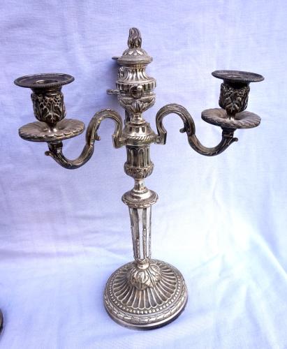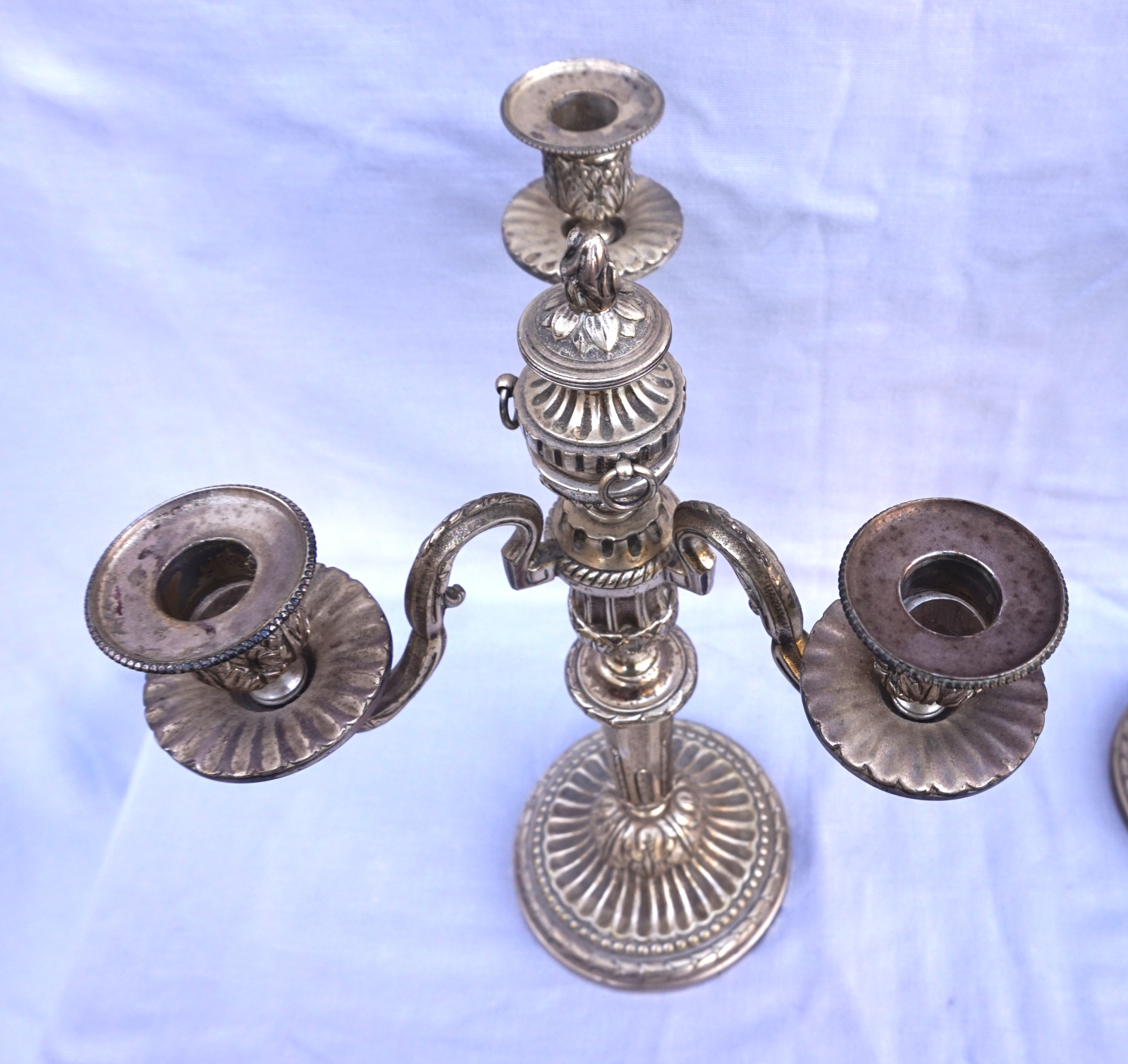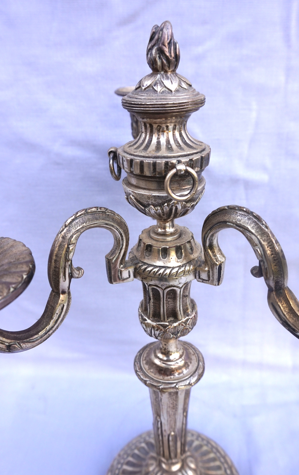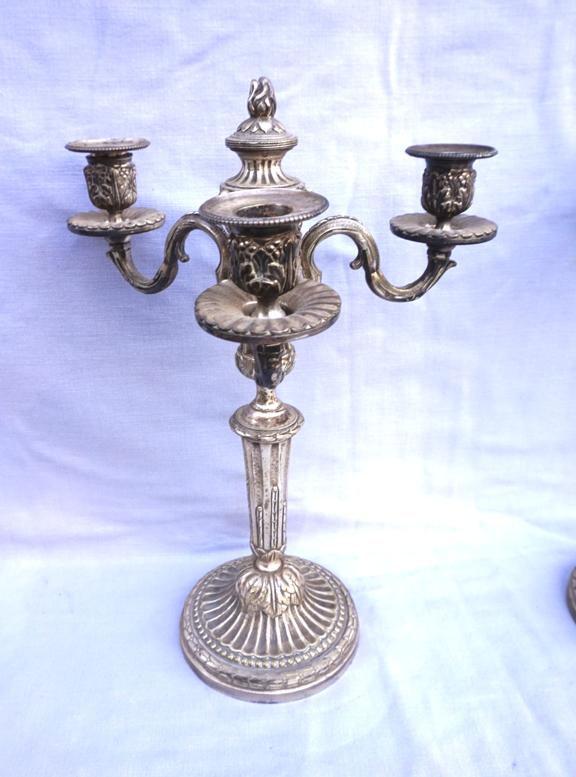 Silver Plated Brass Candelabra 3 Lights Pair Louis XVI 19th C 15"