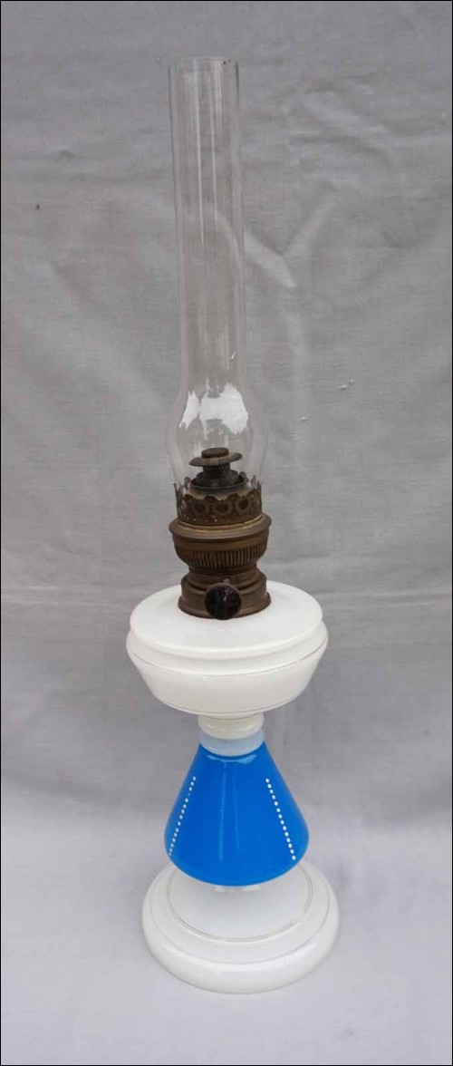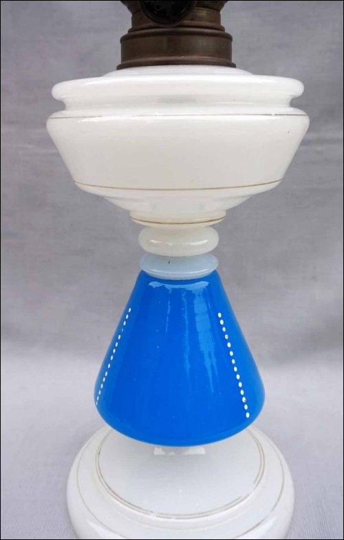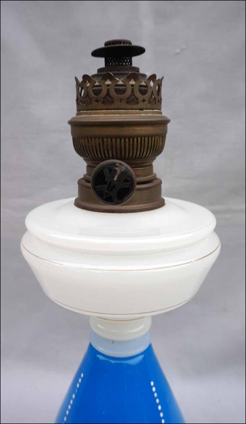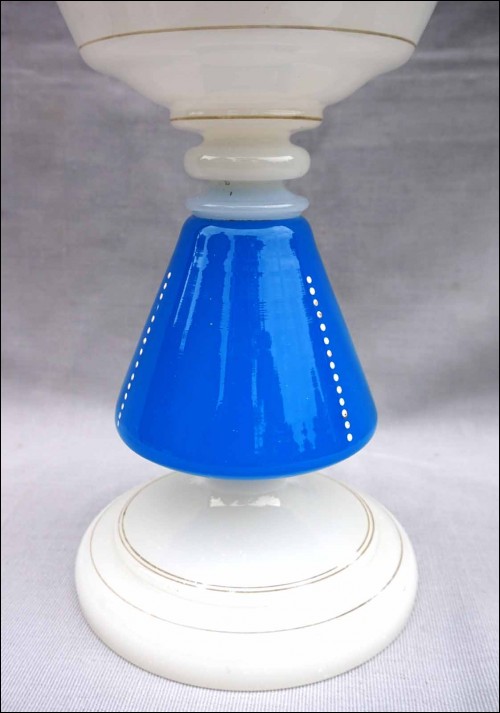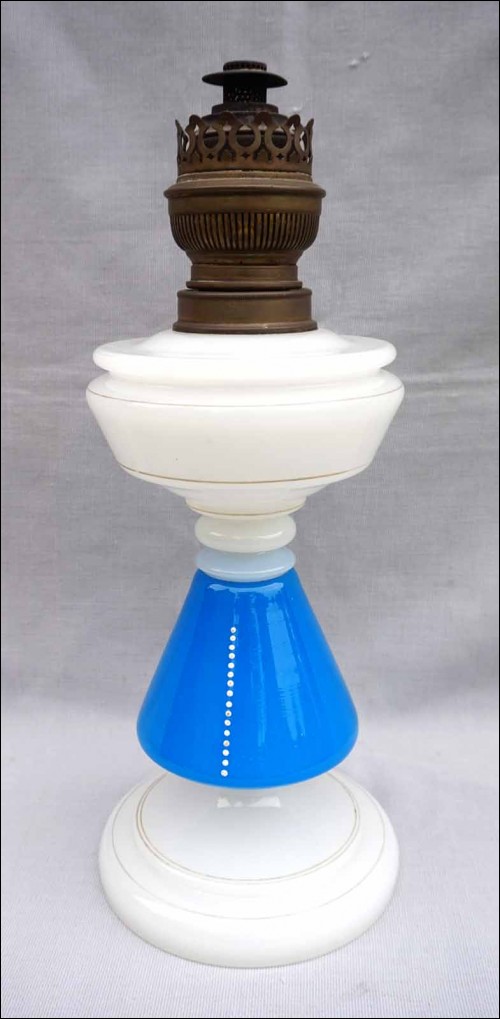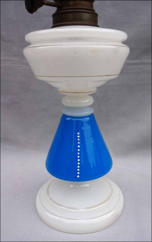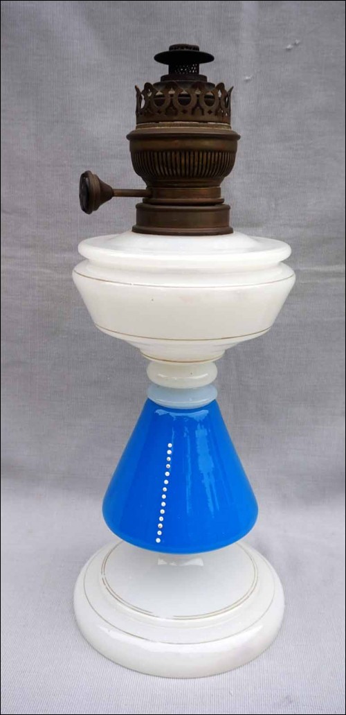 St Louis Cobalt Blue White Opaline Glass Oil Lamp Matador Burner 1850