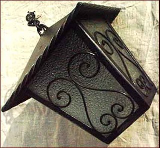 This wrought iron and granite glass lantern has been made around 1940. Good condition. 9"7/16 tall, 8"5/8 width.