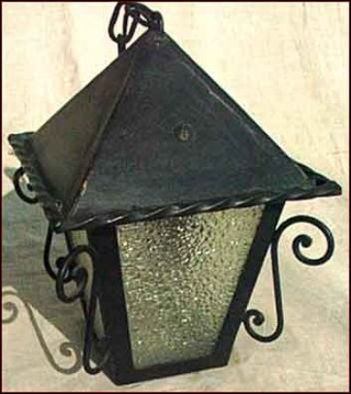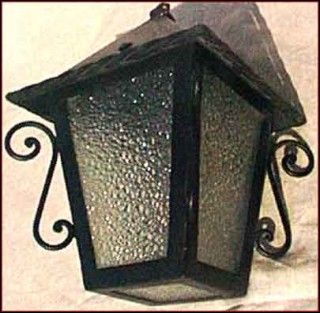 This wrought iron and granite glass lantern has been made around 1940. Good condition. 10"1/2 tall, 7"7/8 width.
