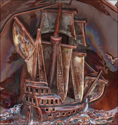 Wall Light Sconce Majolica Galleon Sailing Boat Relief Souchon Vallauris