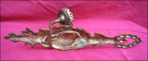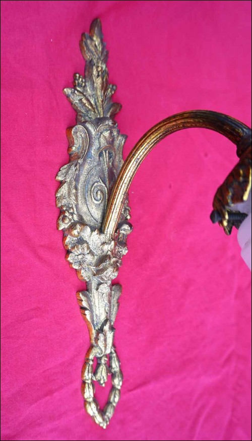 Applique mural en bronze avec une tulipe en verre dépoli, vers 1920. Hauteur 30 cm, profondeur 24.7 cm, diamètre de la tulipe 14 cm. Parfait état.