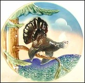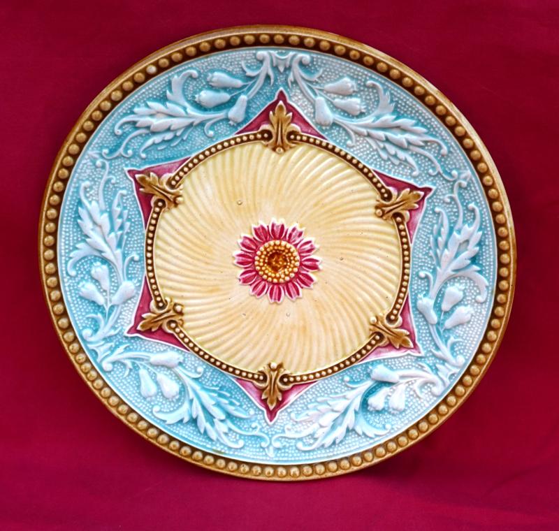 ORCHIES French Majolica Plum Plates Art Nouveau 1900's
