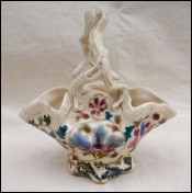Art Nouveau Large 16" Majolica Basket Jardiniere Center Piece Poppy 1890's