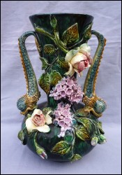 Victorian Alhambrian English Majolica Art Nouveau Vase Staffordshire