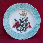 ORCHIES Art Nouveau Majolica Butterfly Flowers Plate 1900's