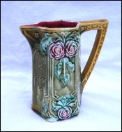 Art Nouveau Majolica Small Pitcher Onnaing Signed Flower 1900's
