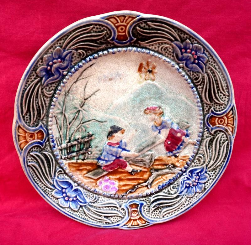 WASMUEL Belgium Majolica Children Swing Plate Late 19th C