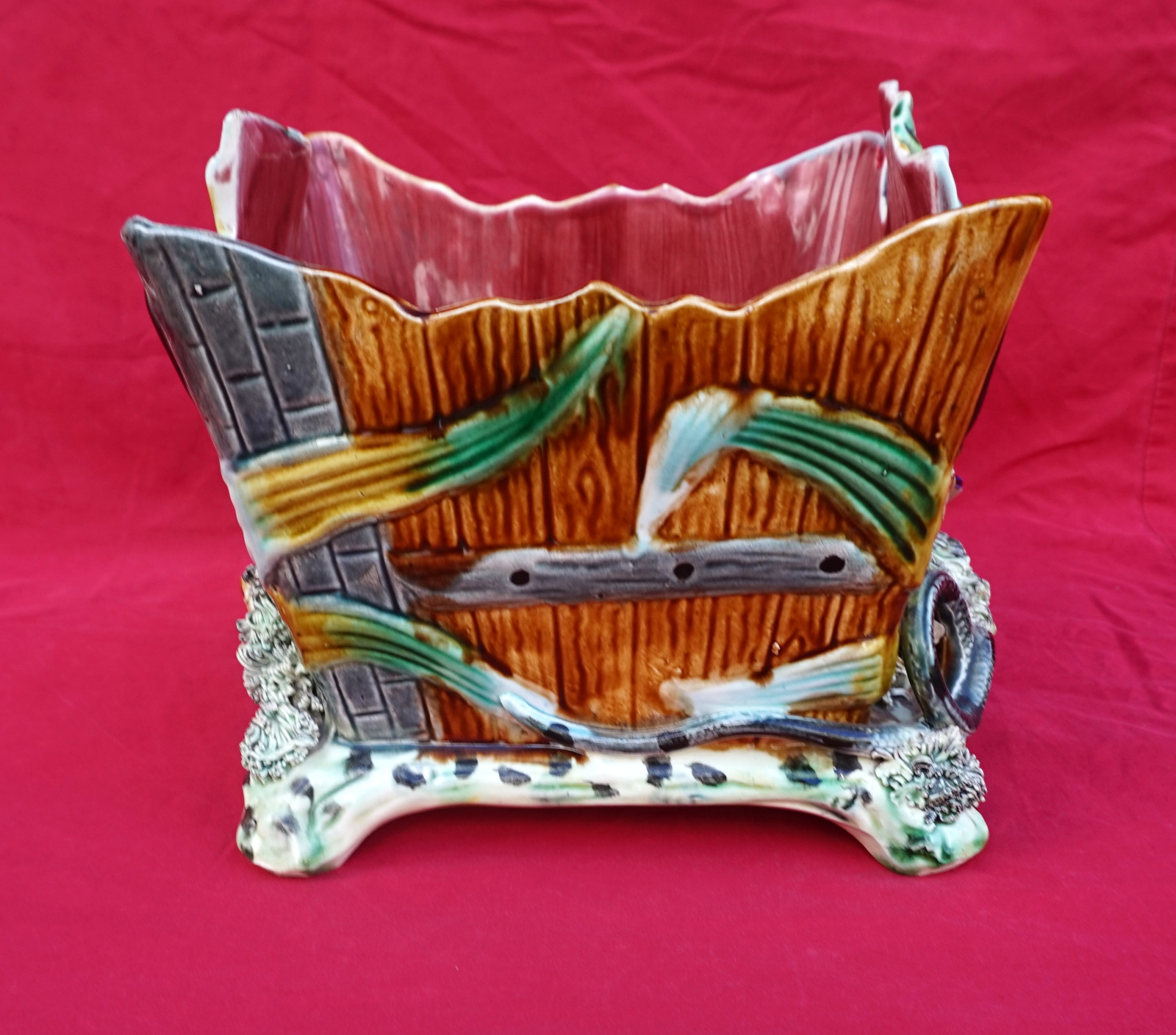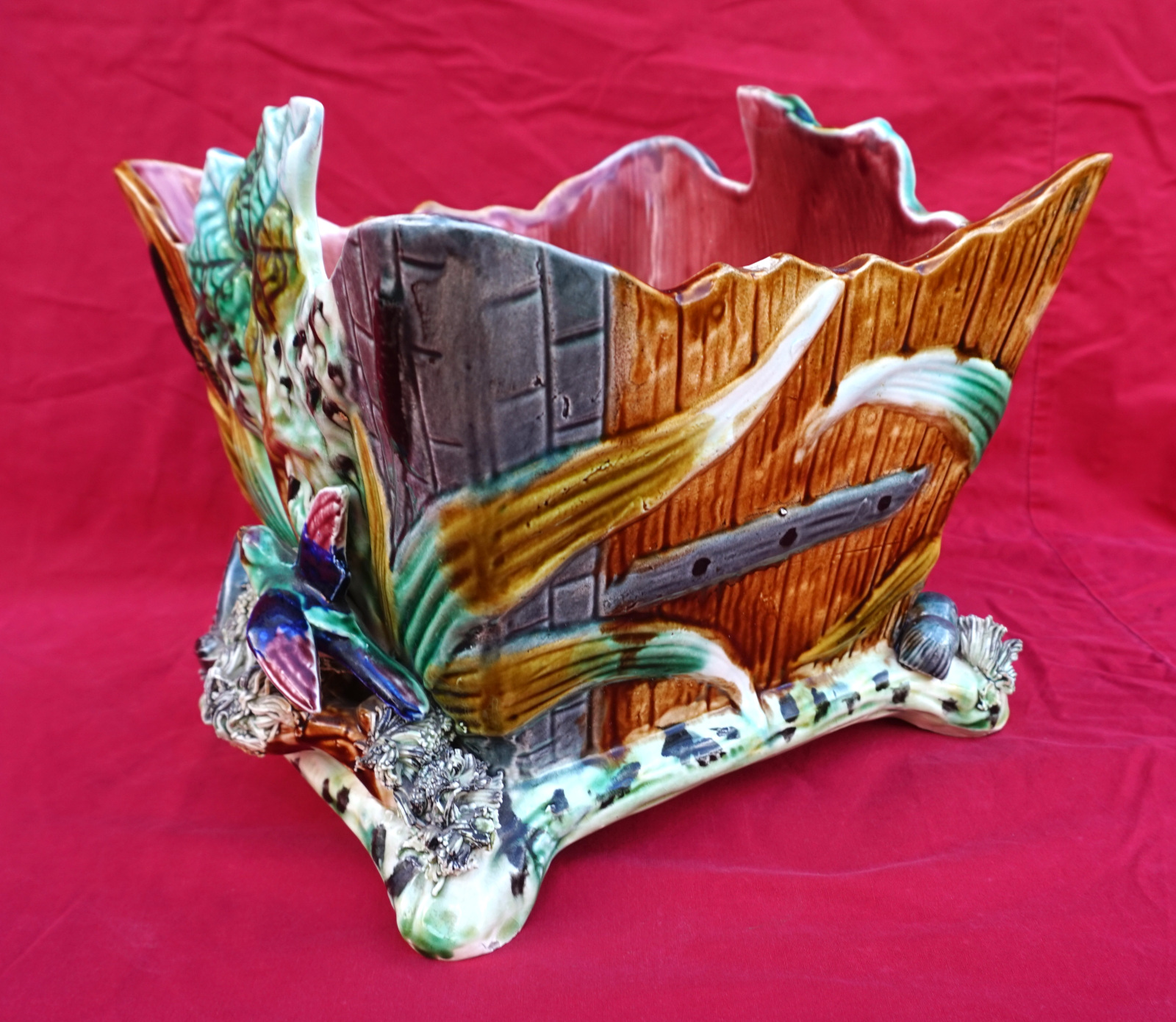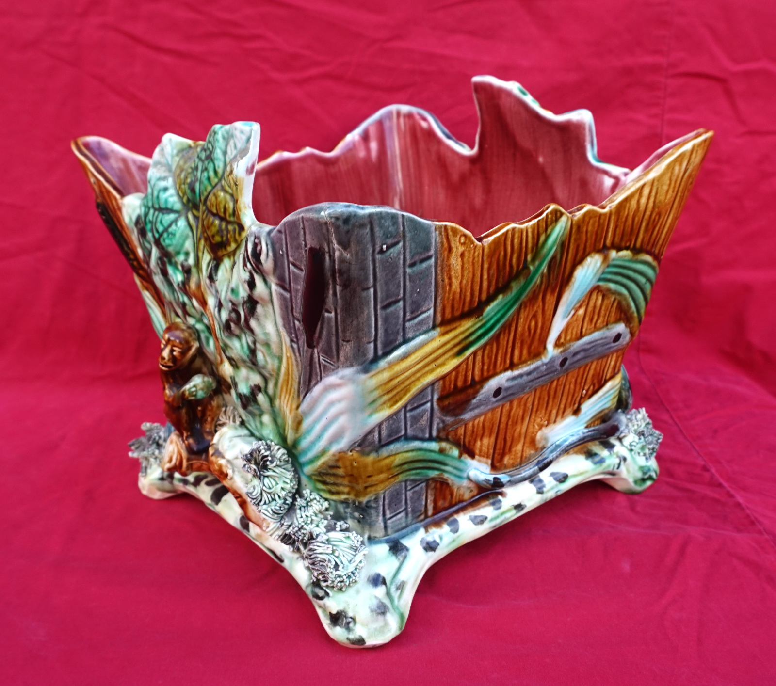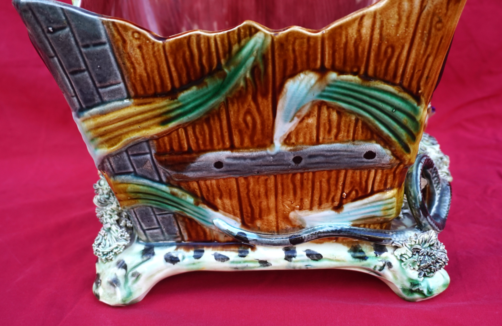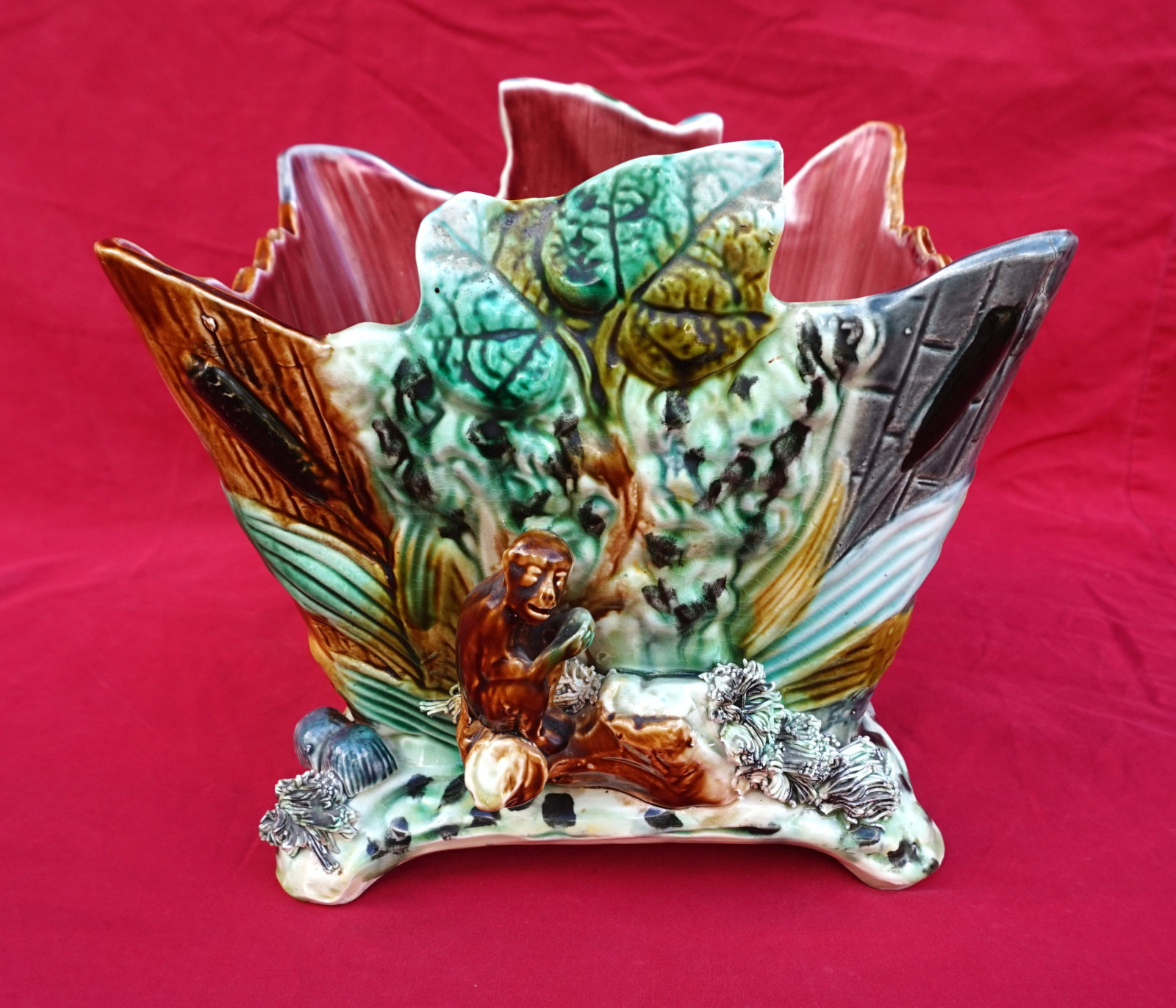 Art Nouveau Majolica Mouzin Lecat Nimy Jardiniere Monkey Bird Snake 1900's