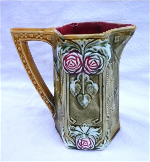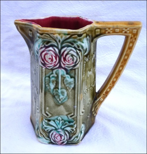 Art Nouveau Majolica Pitcher Onnaing Model 780 Hand Painted Faience