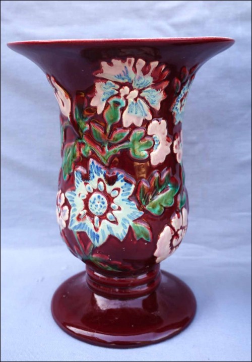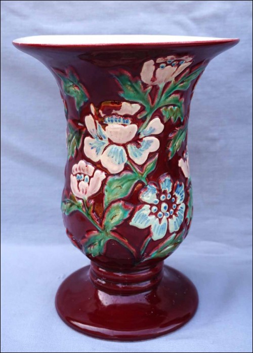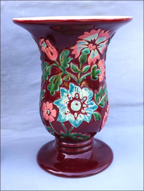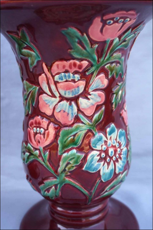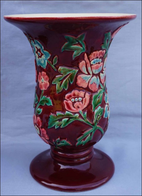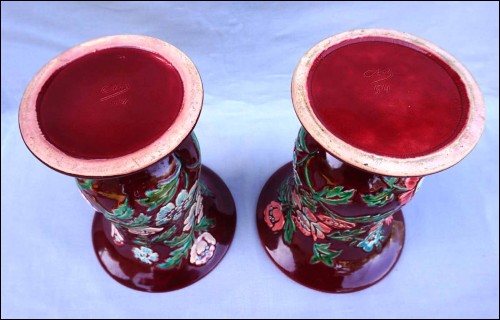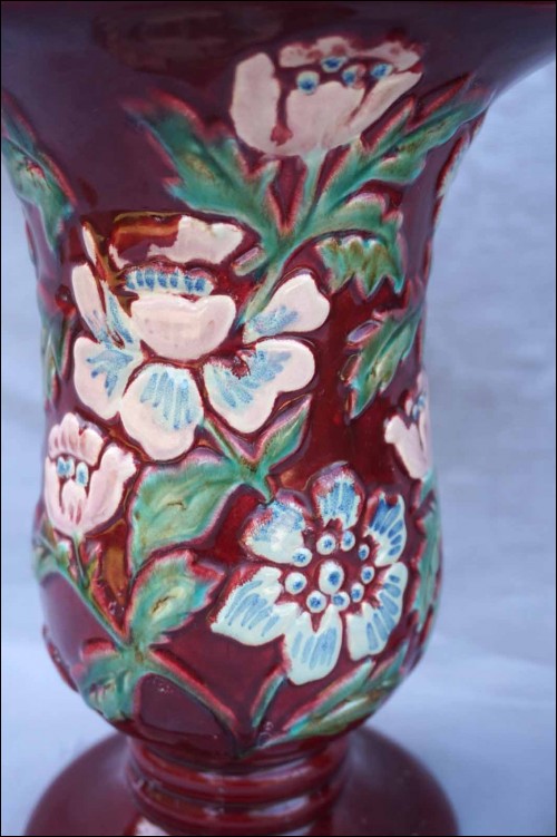BORDEAUX French Hand Painted Majolica Relief Pair Vase 1940