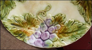 Bunch of grapes Decorative plate in french majolica made during the 1900's.The hand painted decor in relief has great color of enamels. Perfect condition. 8"1/4 diameter.