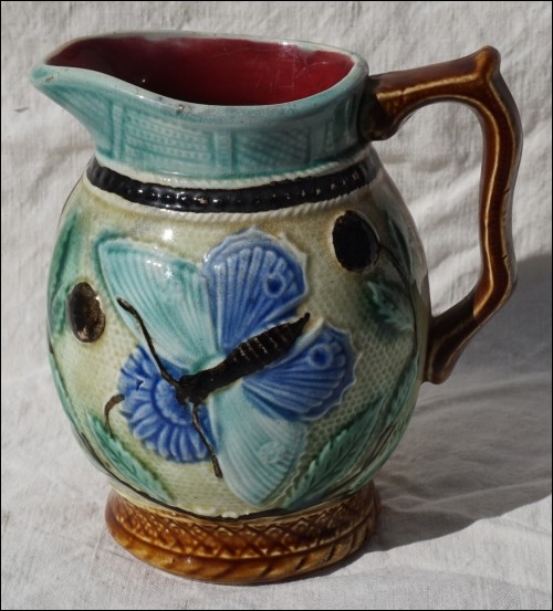 Butterfly Pitcher NIMY Belgium Majolica Signed 1920