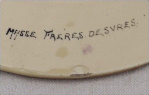 Commemorative plate in gilt majolica for the international exhibition of fishing in Boulogne, largest fishing port on the English channel, made by Masse Freres in Desvres in 1952. It shows a young Normande in traditionnal costume. It's stamped and signed on the back. 5 1/2" diameter. Good condition with two holes for hanging, a small chip on the back not visible in front as presented on the following pictures.