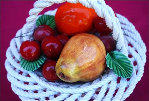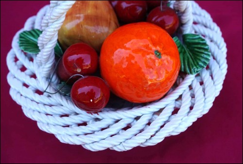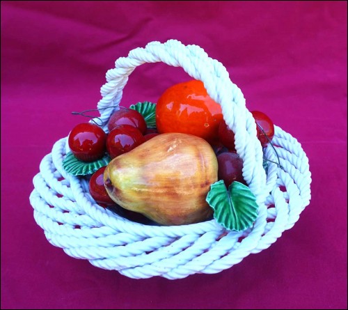 Fruits Basket Trompe l'Oeil Italian Majolica Vintage Cherry Pear Mandarin