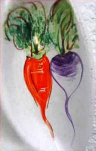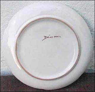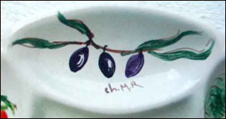 Grill fondue plates in french majolica about 1950. It's all hand painting and signed in front Ch. M.R. 9"1/4 diameter. Good condition.