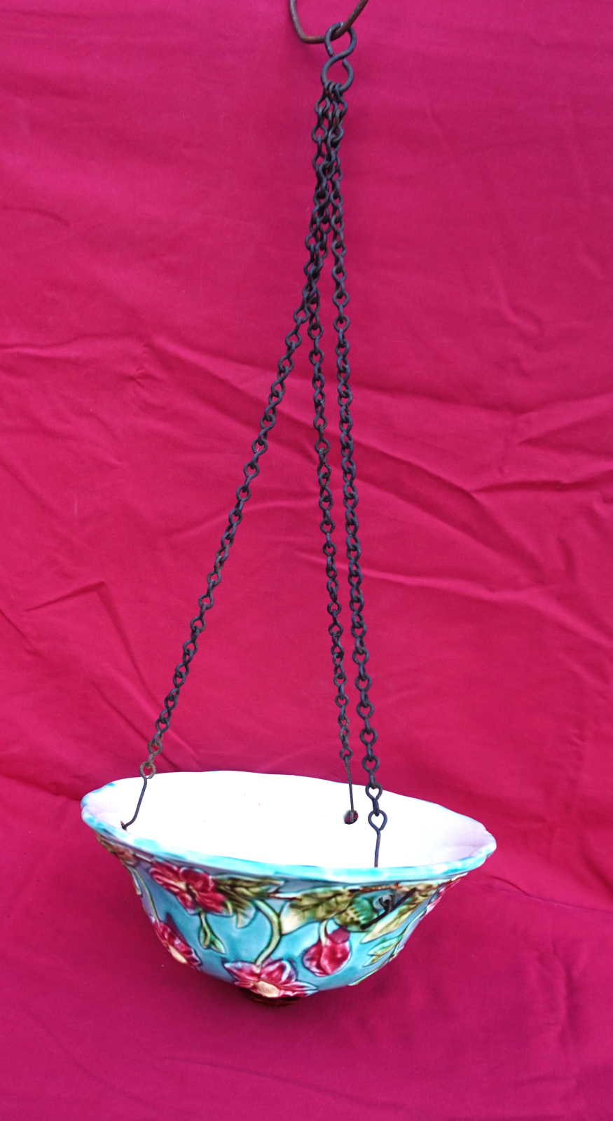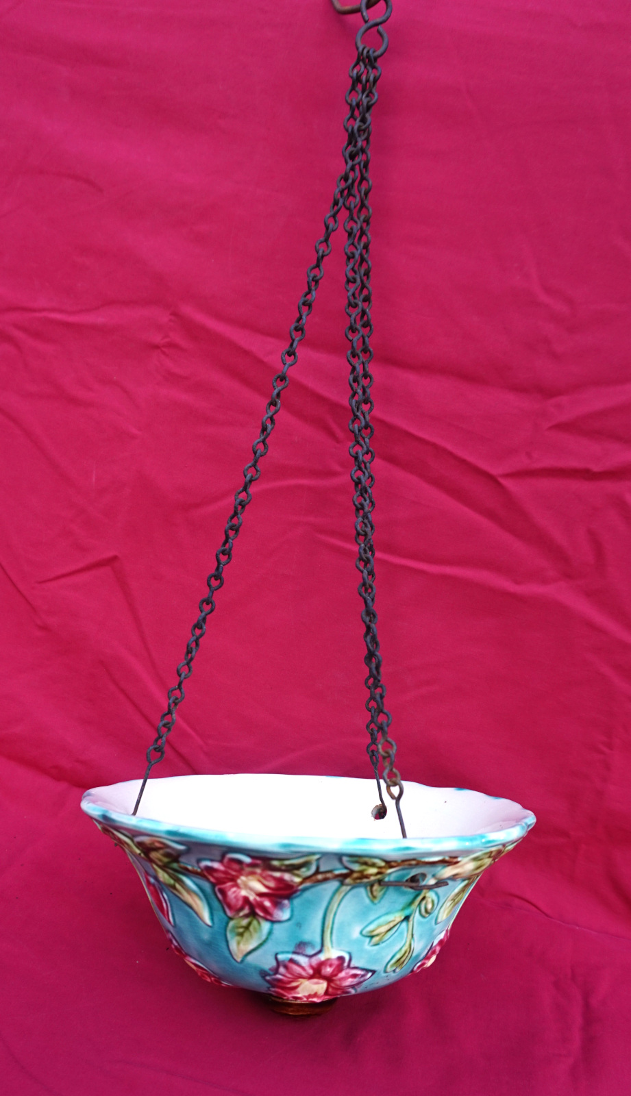 Majolica Art Nouveau Hanging Planter Jardiniere ORCHIES 1900's