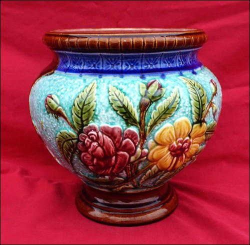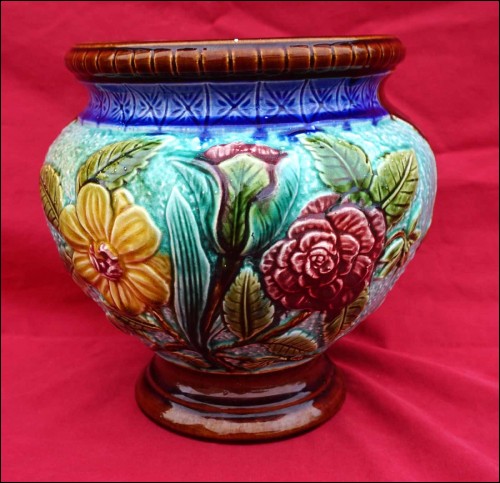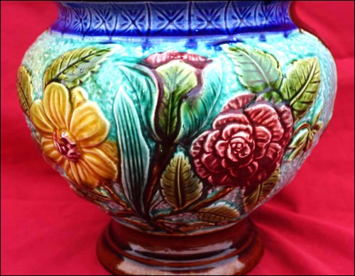 Majolica flower pot jardiniere Gustave De Bruyn late 19th century