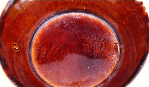 Jardinière en barbotine à décor de fleurs par Gustave De Bruyn, vers 1880. Elle est signée sur son fond U 100. Hauteur 21cm, diamètre au col 18.5cm. Parfait état.