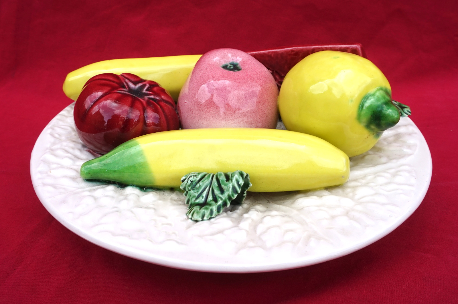 Majolica Fruit Trompe L'Oeil Faience Plate Vintage